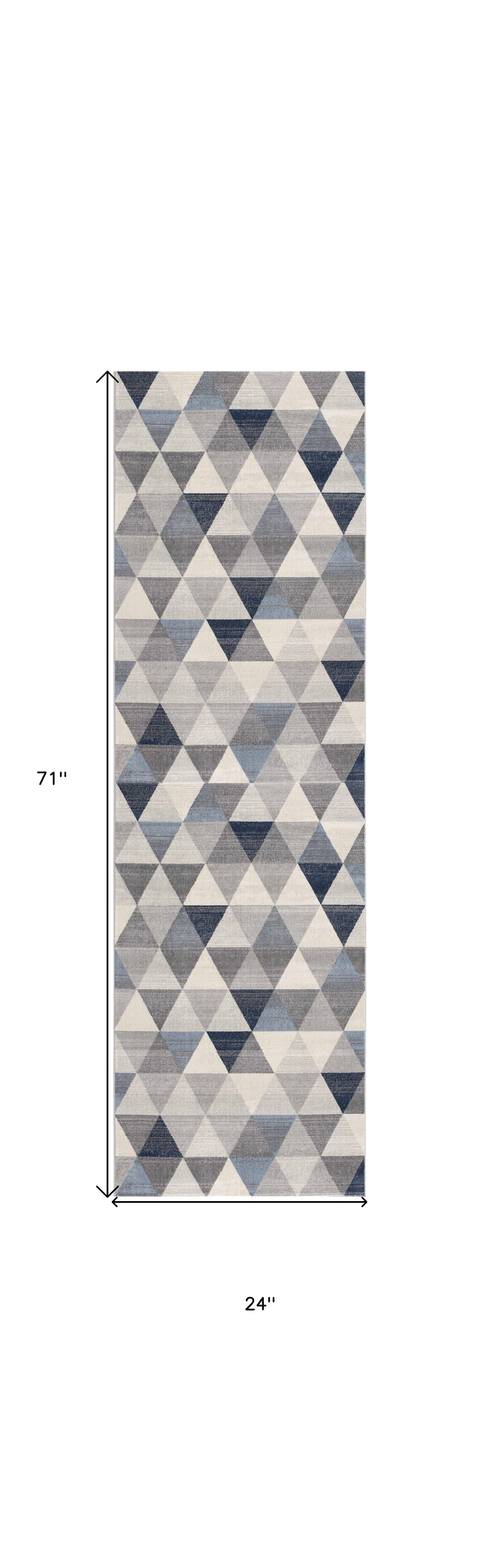 2’ X 10’ Navy Blue Geometric Diamond Runner Rug