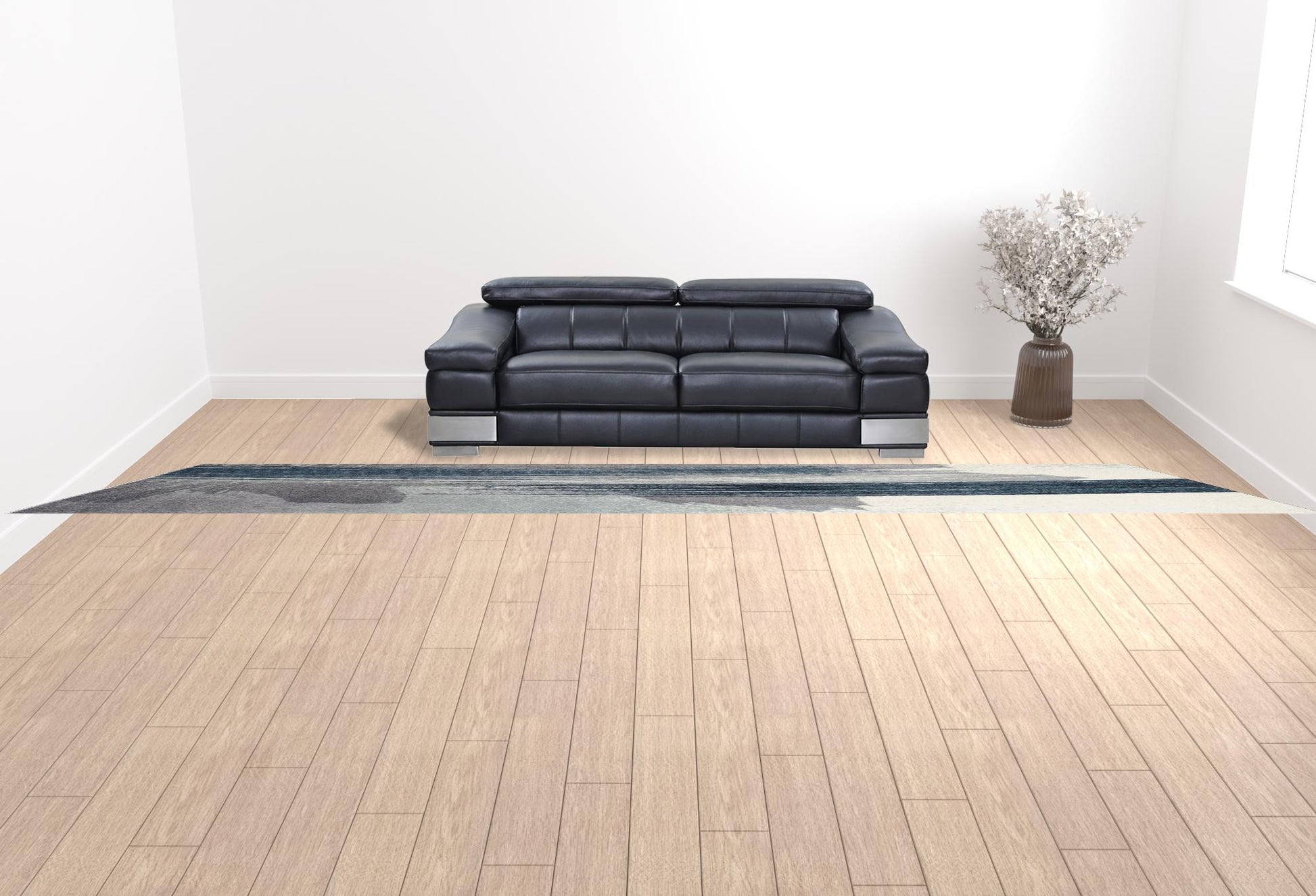2' X 20' White And Blue Abstract Power Loom Stain Resistant Area Rug