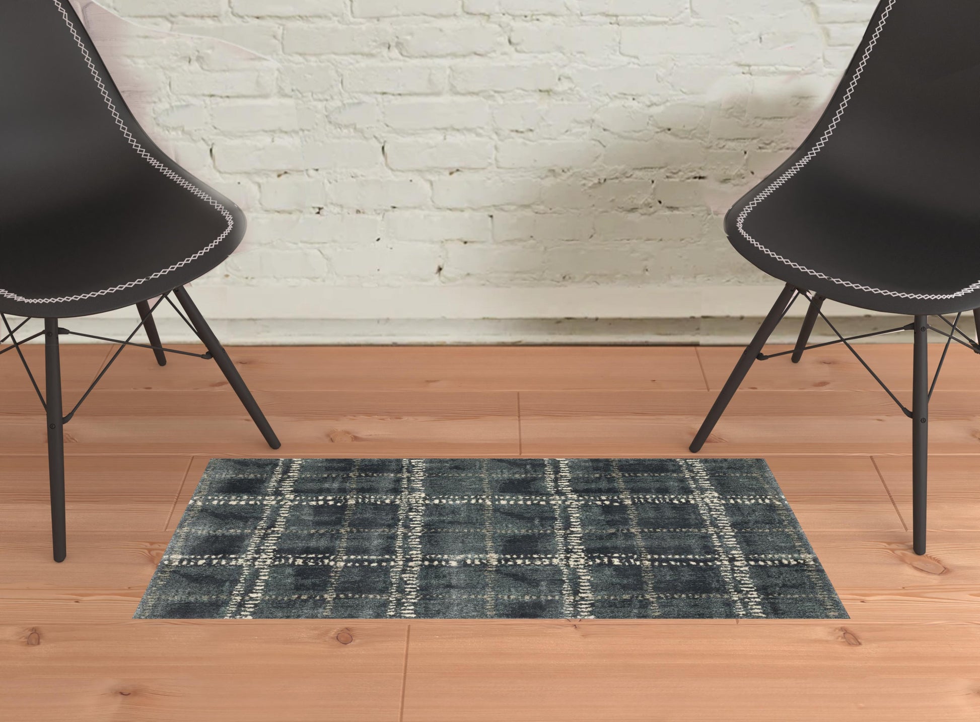 2' X 3' Blue And Ivory Geometric Power Loom Stain Resistant Area Rug