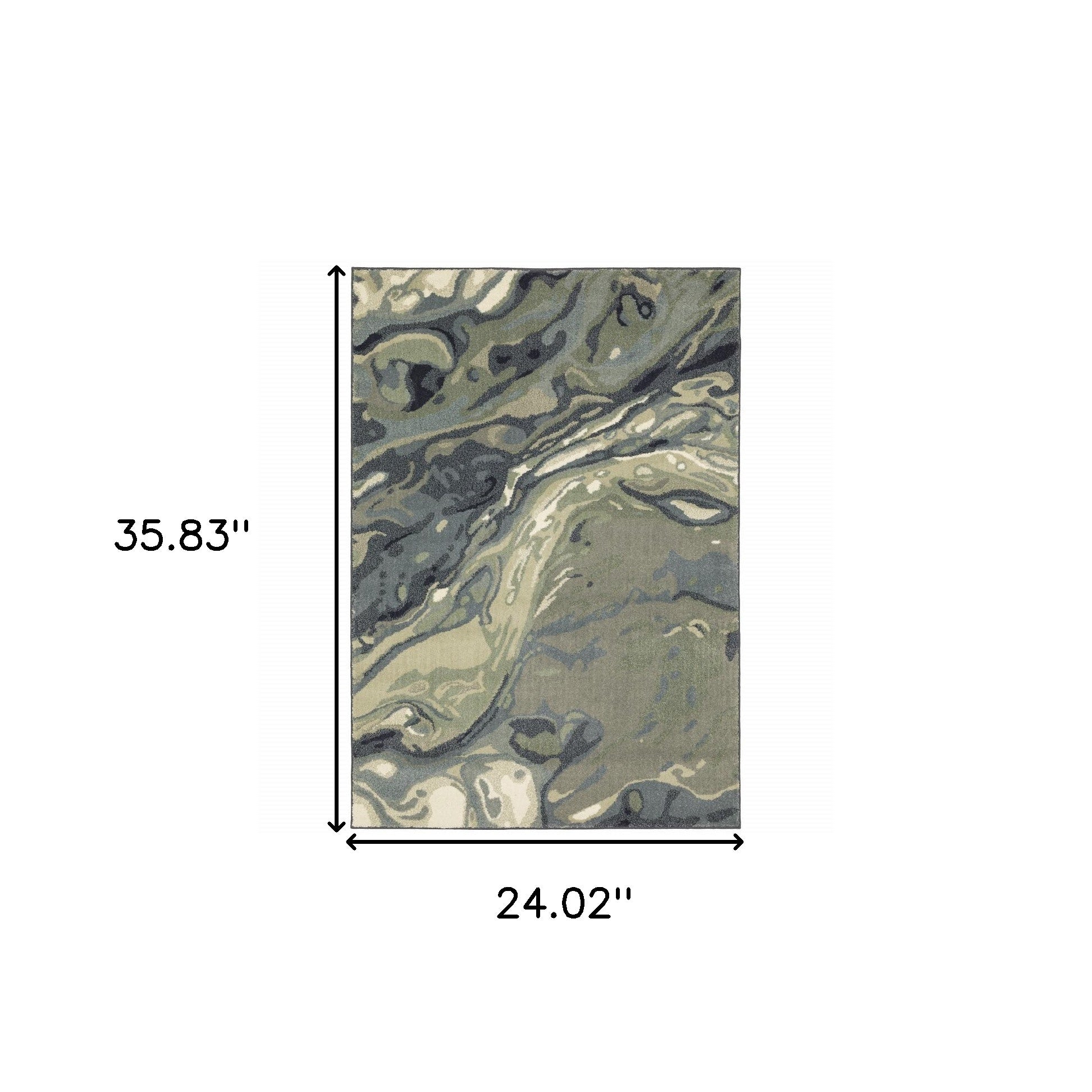 2' X 3' Blue Sage Green Grey Beige And Light Blue Abstract Power Loom Stain Resistant Area Rug