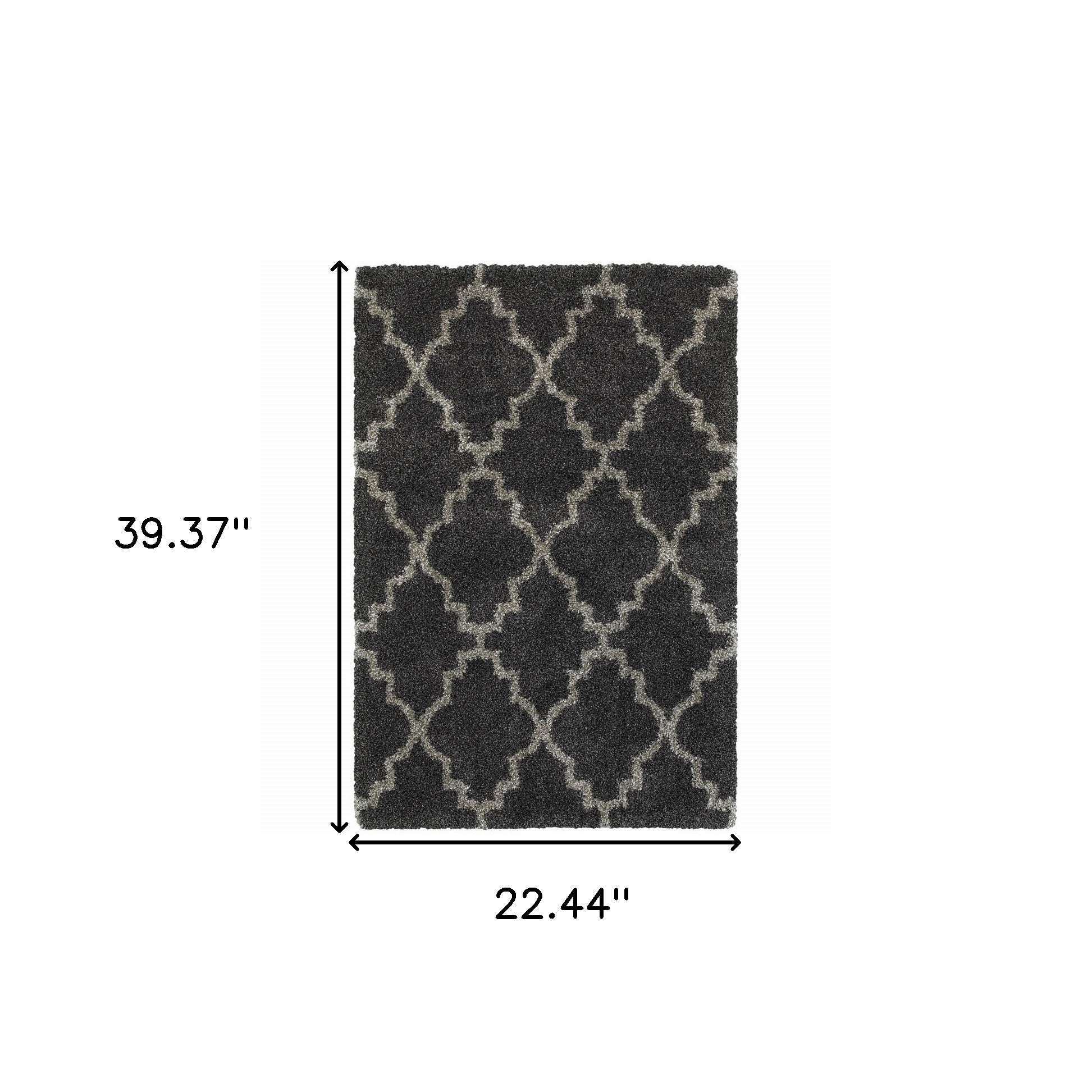 2' X 3' Charcoal And Grey Geometric Shag Power Loom Stain Resistant Area Rug