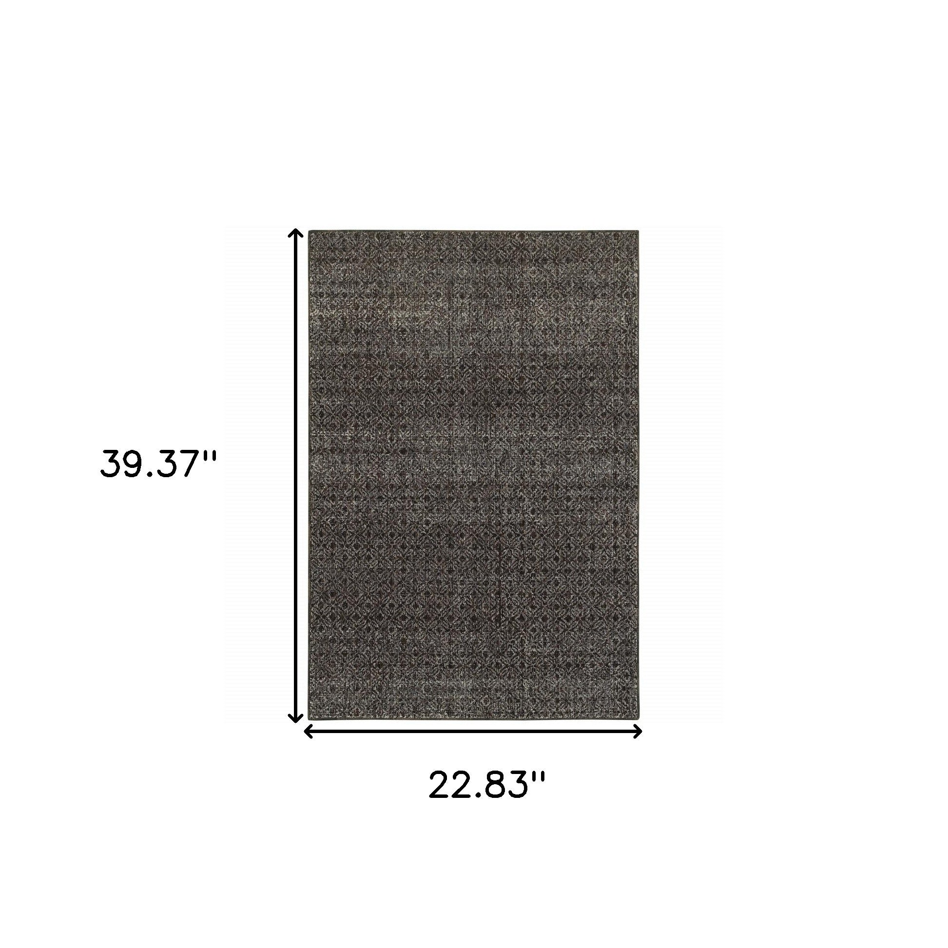 2' X 3' Charcoal Grey And Brown Geometric Power Loom Stain Resistant Area Rug