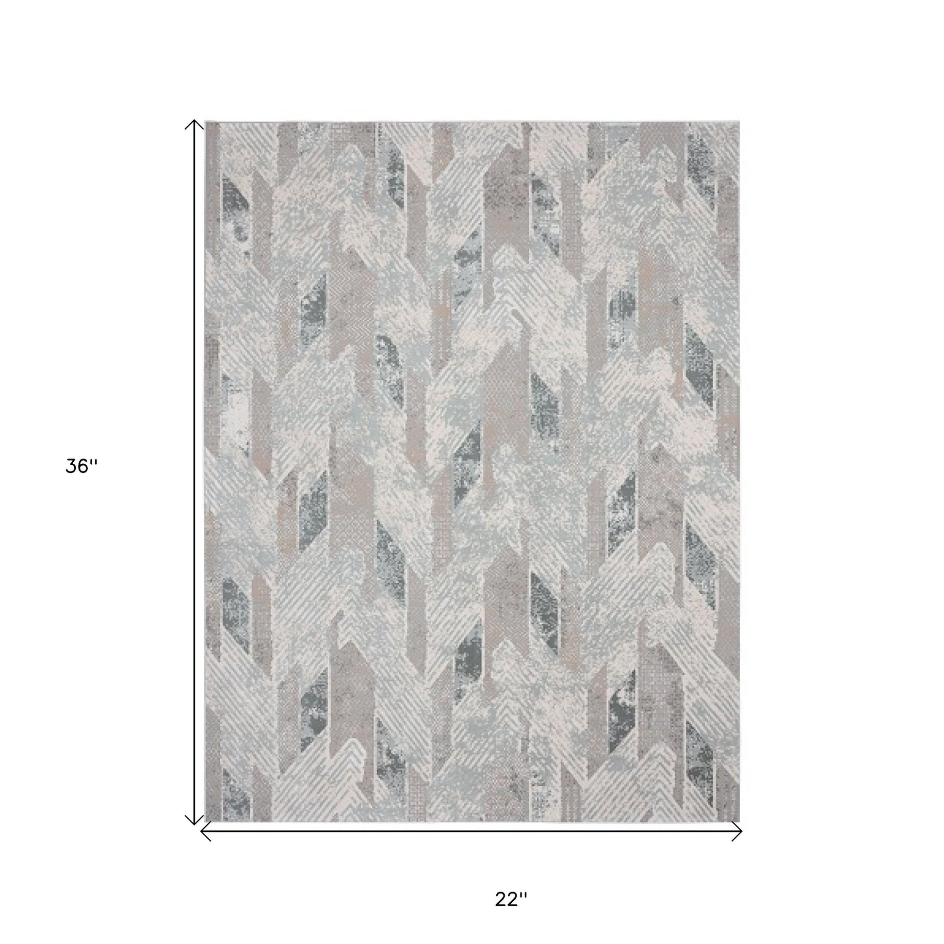 2' X 3' Gray Blue And Cream Geometric Distressed Stain Resistant Area Rug