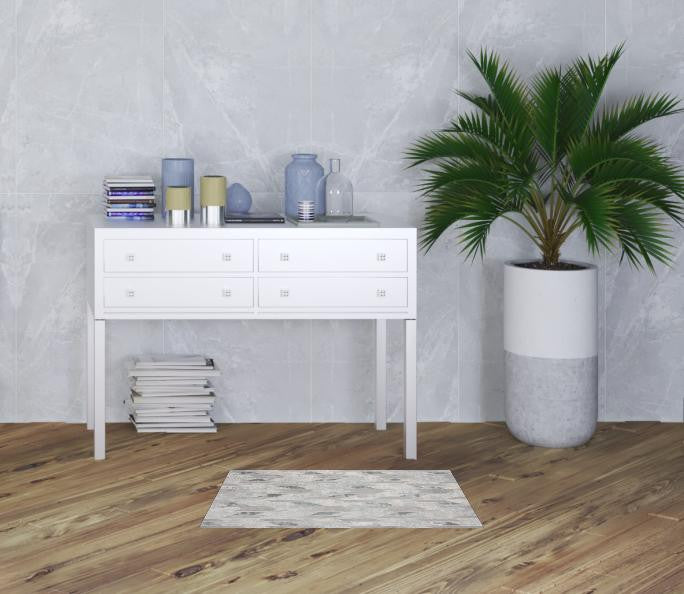 Set an inviting tone in your space with this 2' x 3' gray blue and cream geometric distressed stain resistant area rug. This rectangle shaped rug features a geometric design in gray blue and cream to give it visual interest. A classic shape marries with good looking design for your space Made in Turkey, this rug offers high quality combined with good looking designer sensibilities. Ideal for spaces with kids and pets, this rug is stain resistant to help repel stains and spilled liquids. Place this area rug against a hardwood or tile floor and it will enliven your living space with style and sophistication. 0.2" H x 36" W x 22" D