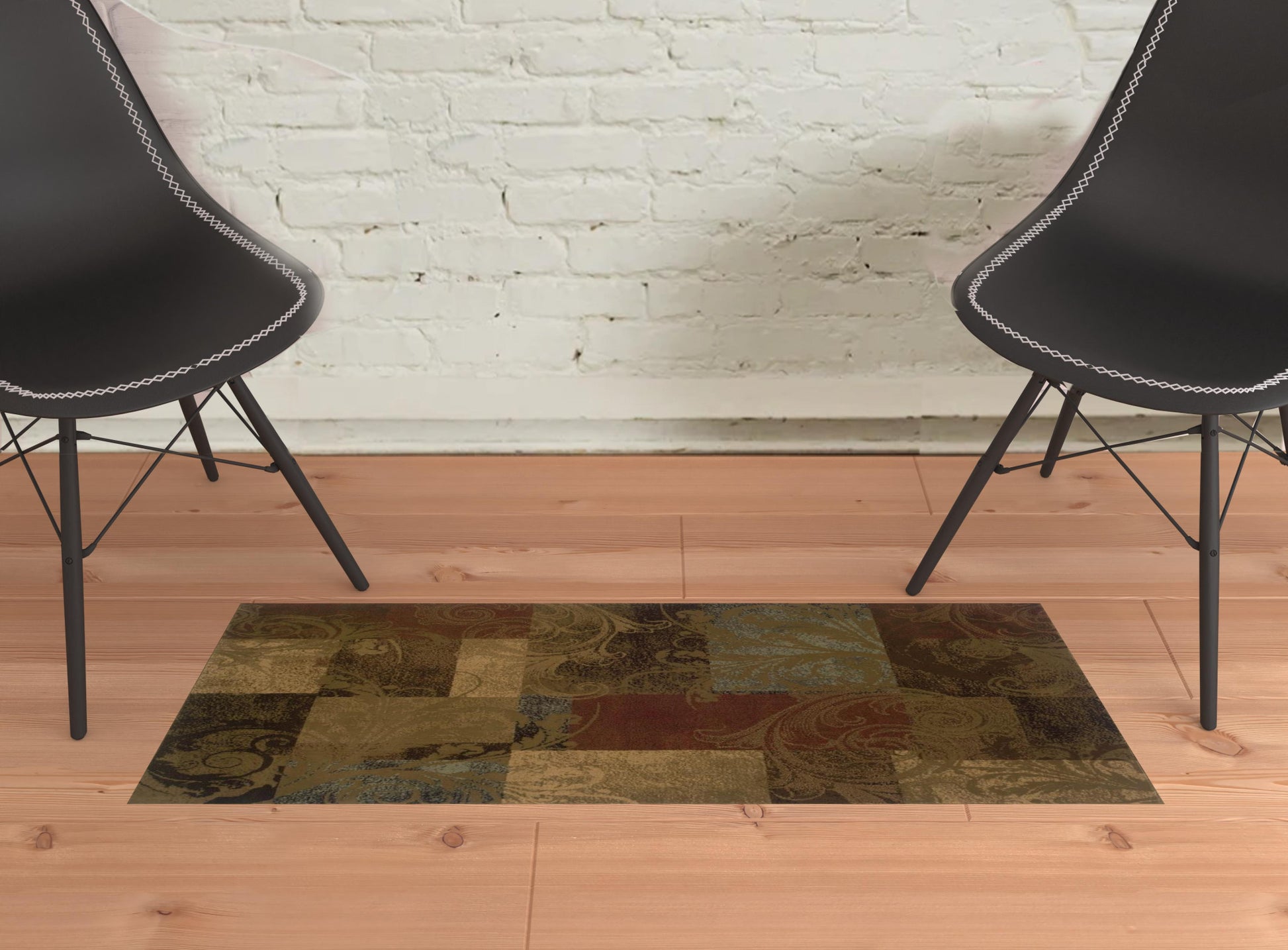 2' X 3' Green And Red Geometric Power Loom Stain Resistant Area Rug