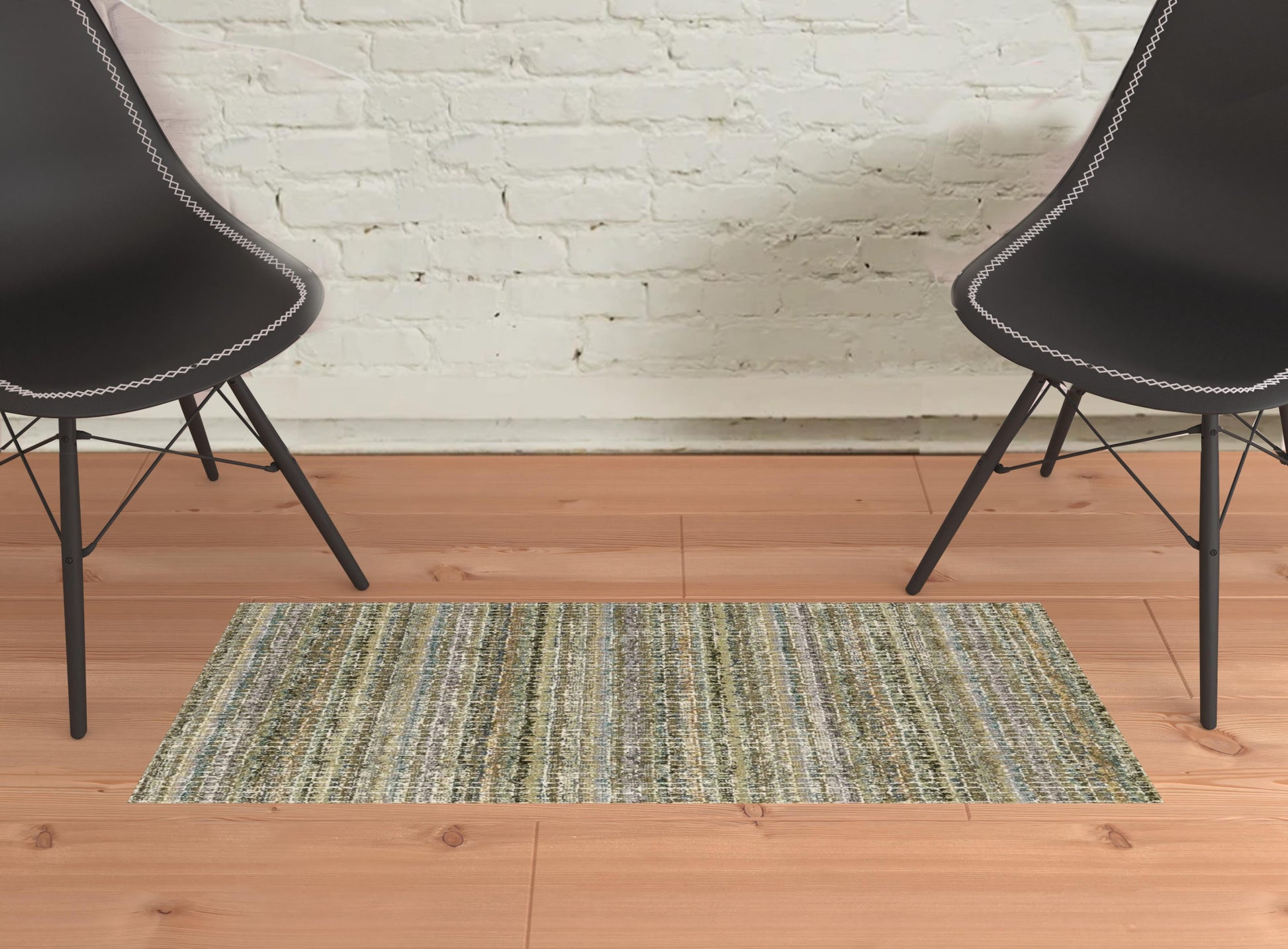 2' X 3' Green Green Grey And Purple Abstract Power Loom Stain Resistant Area Rug