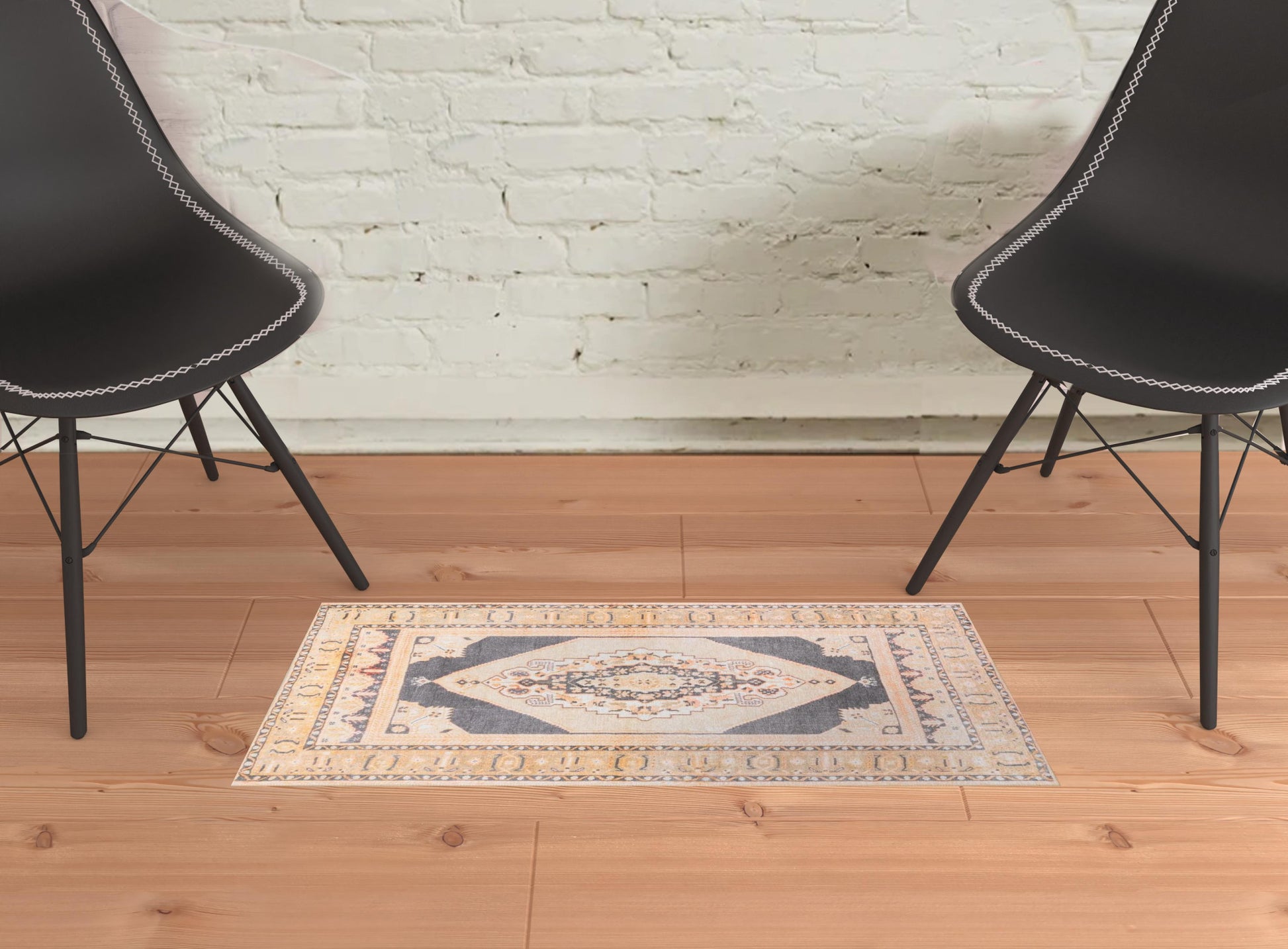 2' X 3' Grey And Gold Oriental Power Loom Stain Resistant Area Rug
