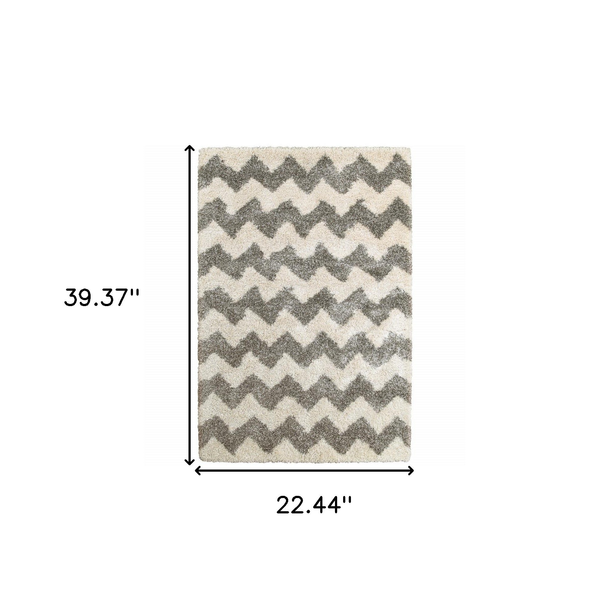 This 2' x 3' grey and ivory geometric shag power loom stain resistant area rug, is a great way to add warmth to a room. This rectangle shaped rug features a geometric design in grey and ivory to give it visual interest. A classic shape marries with good looking design for your space Ideal for spaces with kids and pets, this rug is stain resistant to help repel stains and spilled liquids. The retro shag construction of this luxurious rug will provide a soft and comfortable barrier to color tile and hardwood floors. Place this area rug against a hardwood or tile floor and it will enliven your living space with style and sophistication. 1.96" H x 22.44" W x 39.37" D