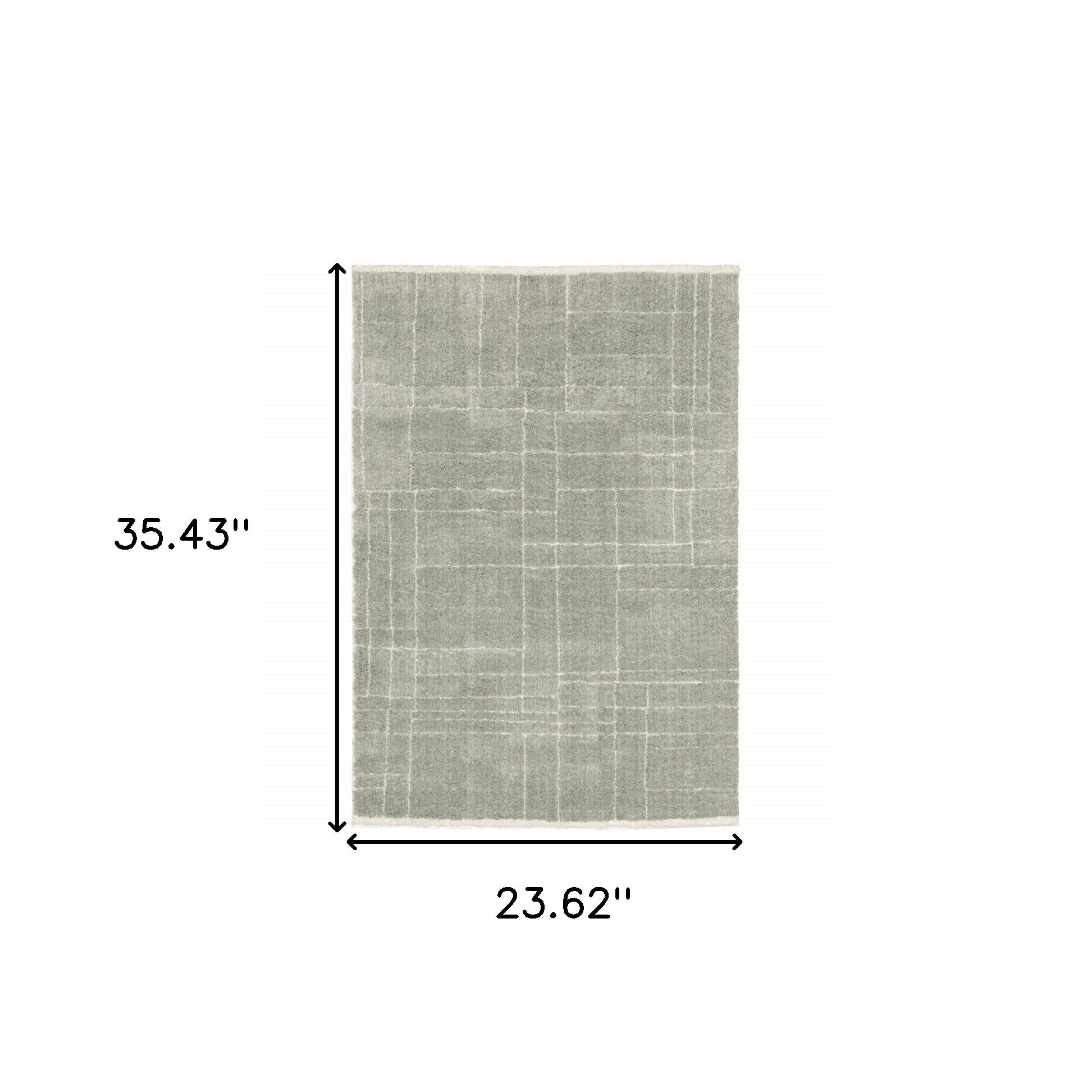 2' X 3' Grey And Ivory Geometric Shag Power Loom Stain Resistant Area Rug