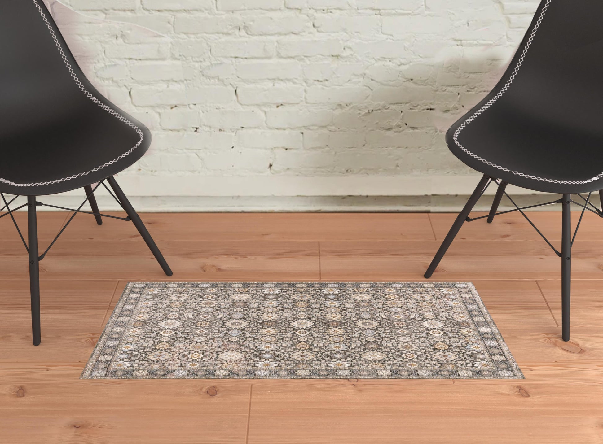 2' X 3' Grey And Ivory Oriental Power Loom Stain Resistant Area Rug With Fringe