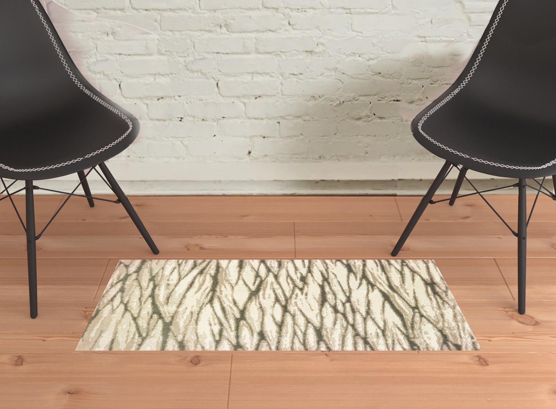 2' X 3' Ivory Sand And Ash Abstract Power Loom Stain Resistant Area Rug