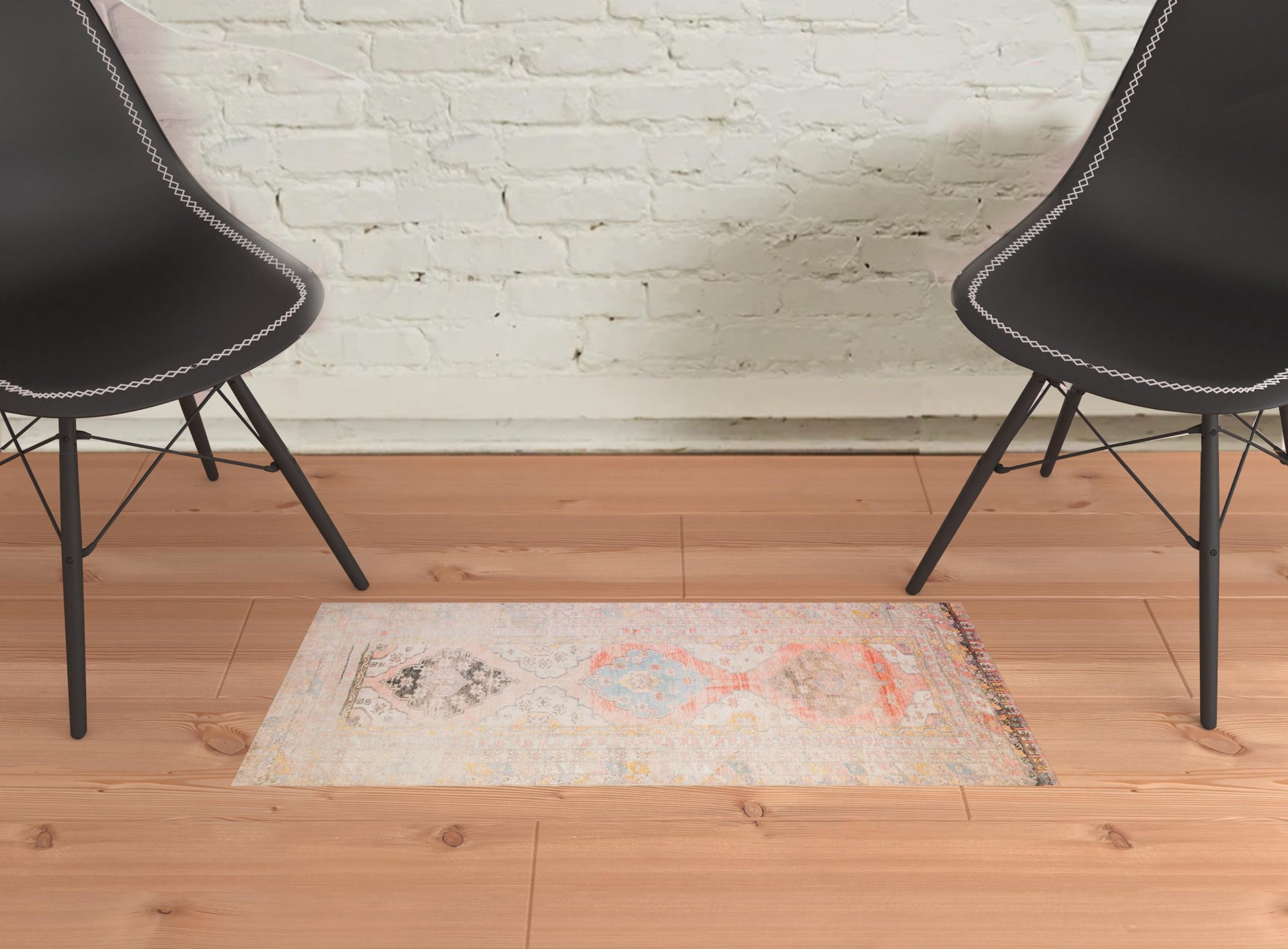 2' X 3' Pink And Blue Oriental Power Loom Stain Resistant Area Rug