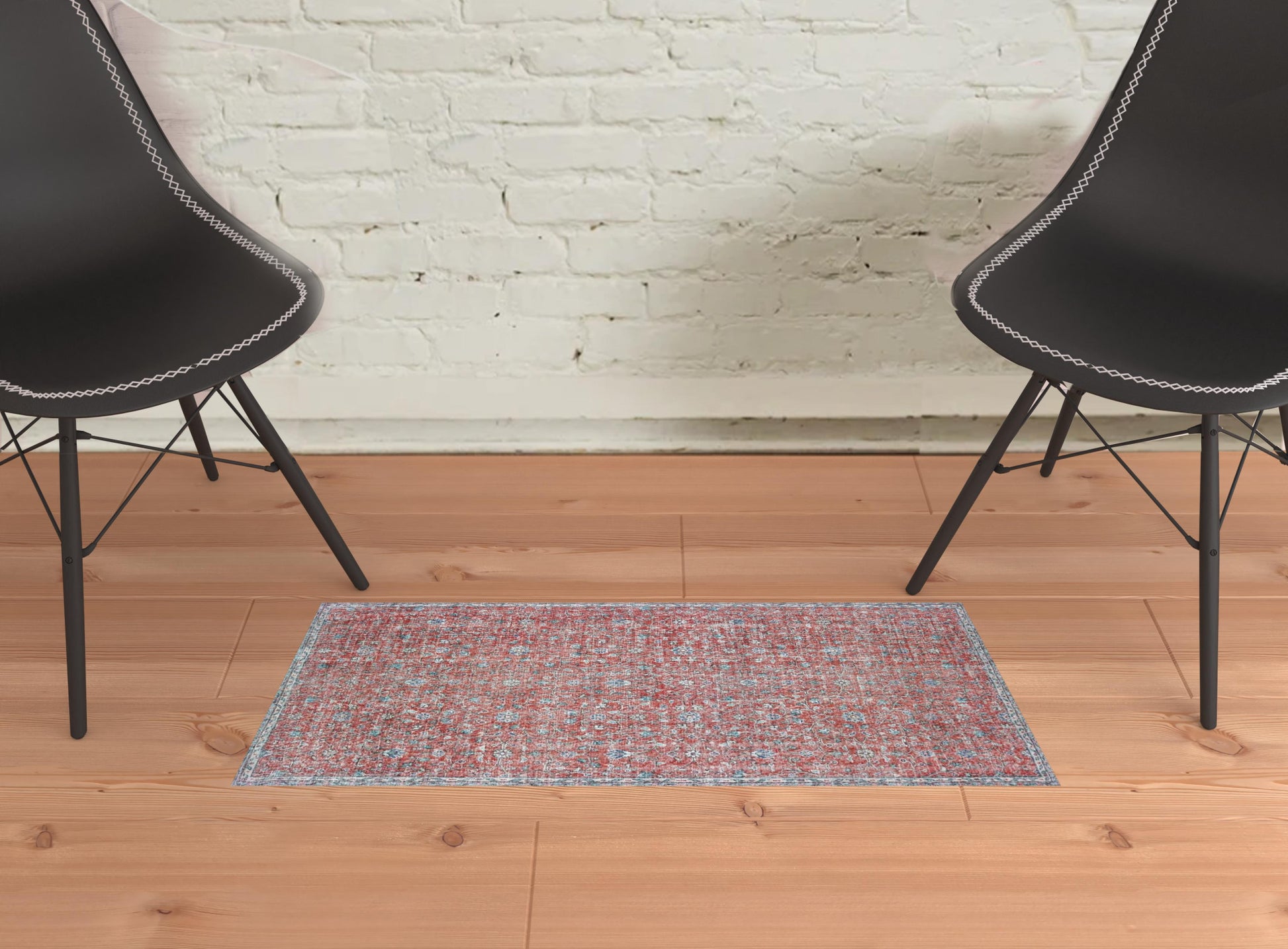 2' X 3' Red And Blue Oriental Power Loom Stain Resistant Area Rug