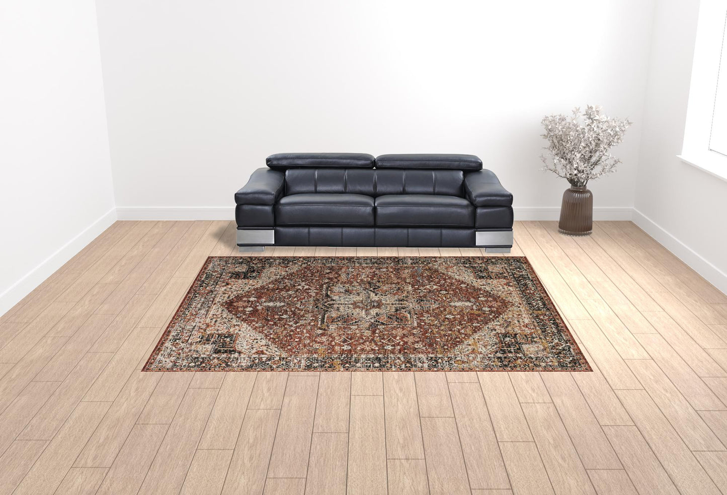 Add some artistry to your room with this 4' x 6' red ivory and black abstract distressed area rug with fringe. This rectangle shaped rug features a abstract design in red ivory and black to give it visual interest. A classic shape marries with good looking design for your space Made in Turkey, this rug offers high quality combined with good looking designer sensibilities. Tassel ends bring a timeless and fashionable look to your interior. Place this area rug against a hardwood or tile floor and it will enliven your living space with style and sophistication. 0.39" H x 45" W x 69" D