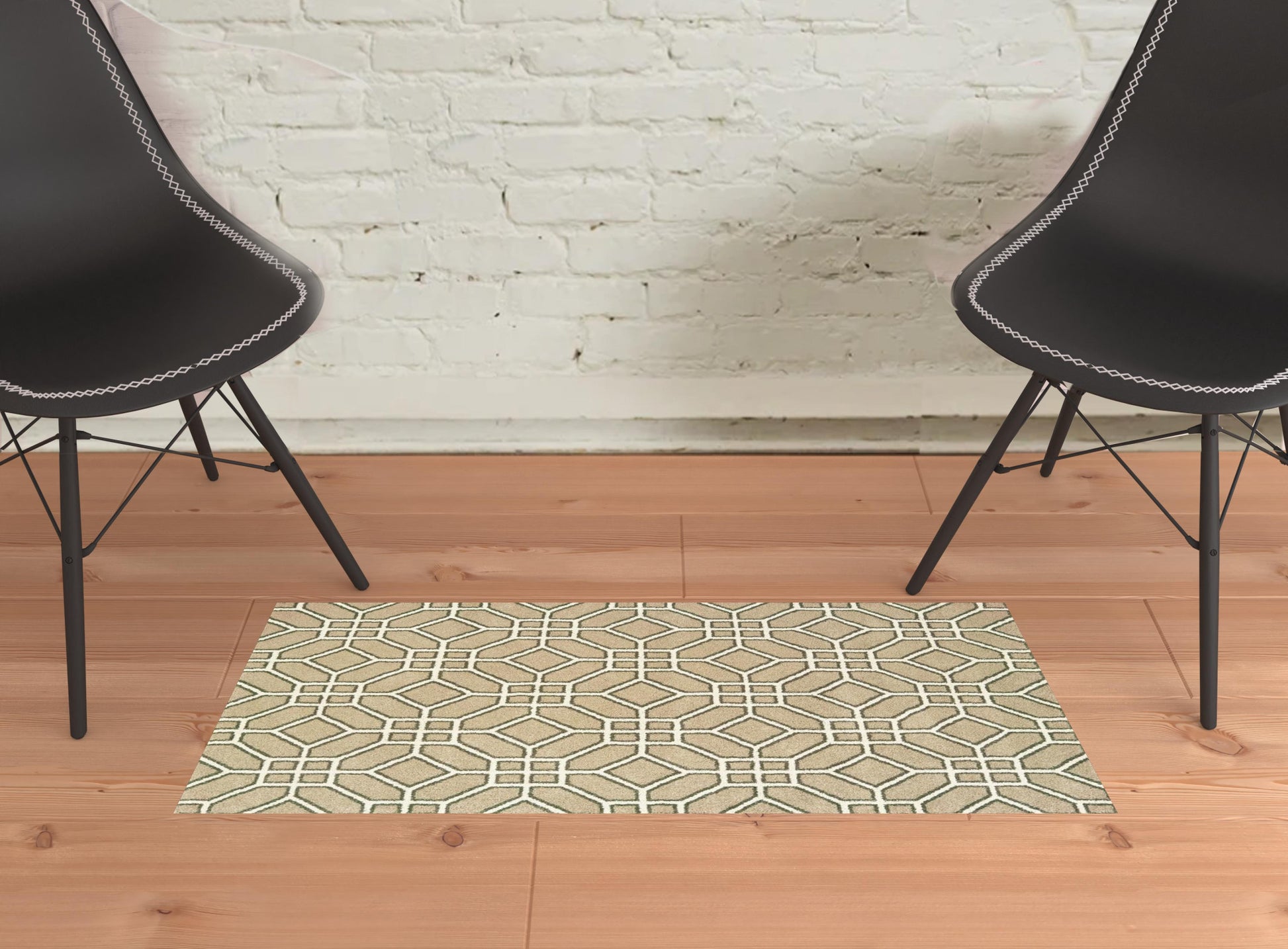 2' X 3' Sand And Ivory Geometric Power Loom Stain Resistant Area Rug