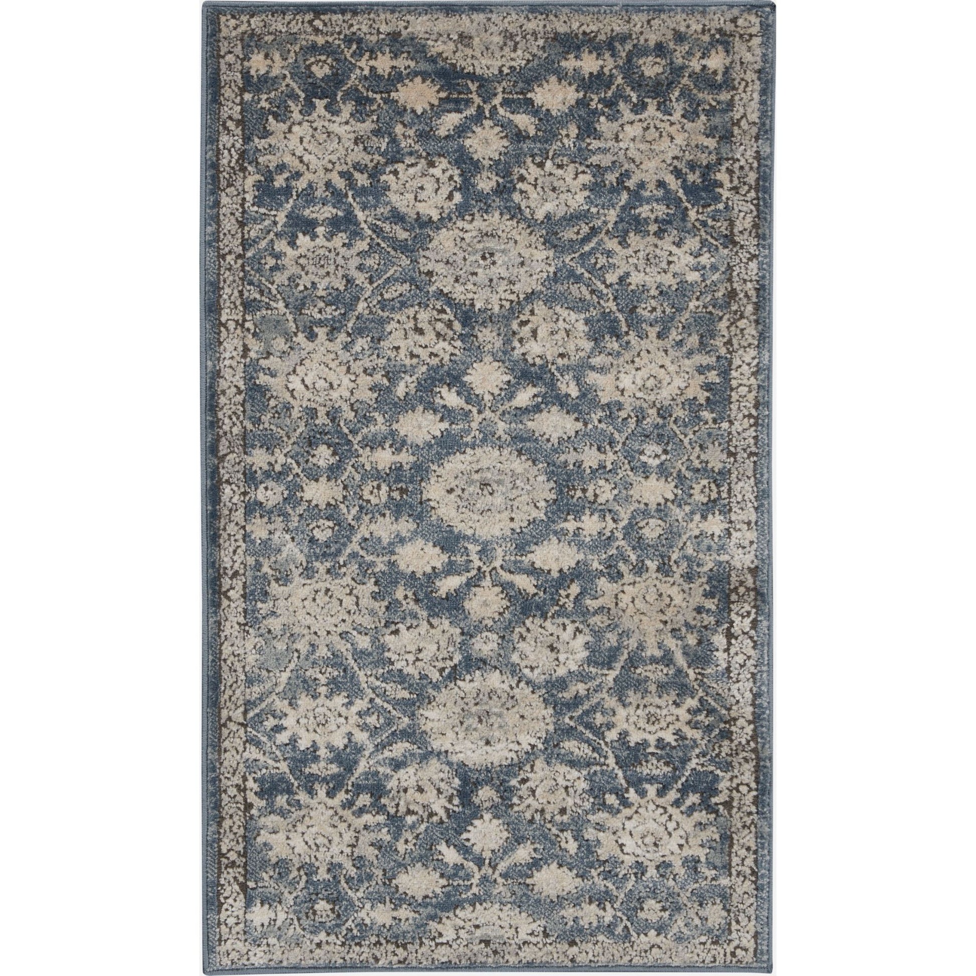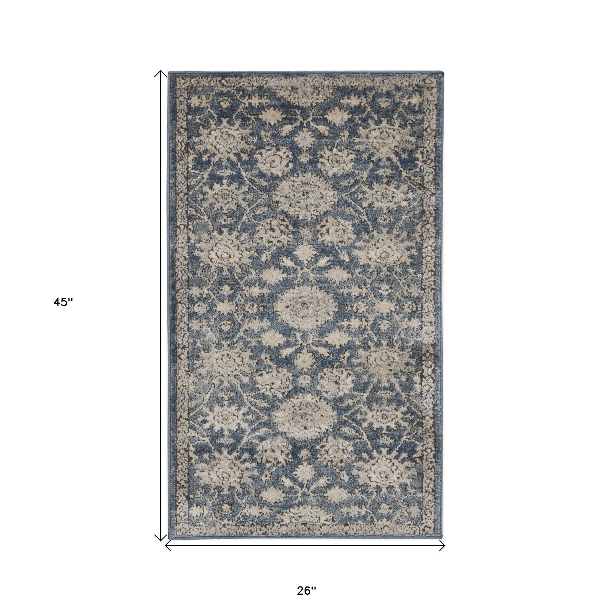 2' X 4' Blue And Beige Oriental Non Skid Area Rug