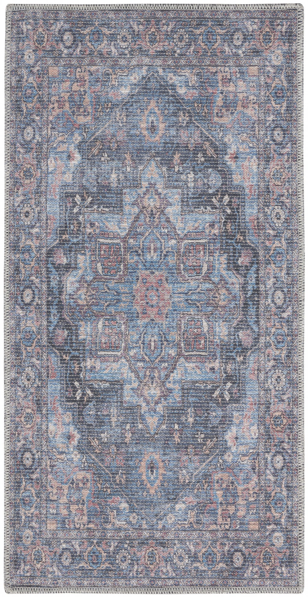 This 2' x 4' light blue oriental power loom distressed washable area rug, is a great way to add warmth to a room. This rectangle shaped rug features a oriental design in light blue to give it visual interest. A classic shape marries with good looking design for your space This superior Turkish rug represents the highest quality and is built to last. Area Rugs help to give warmth and sense of home to your space. .28" H x 24.00" W x 45.00" D