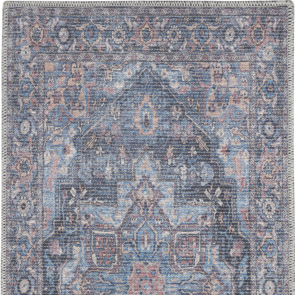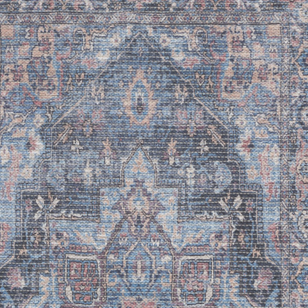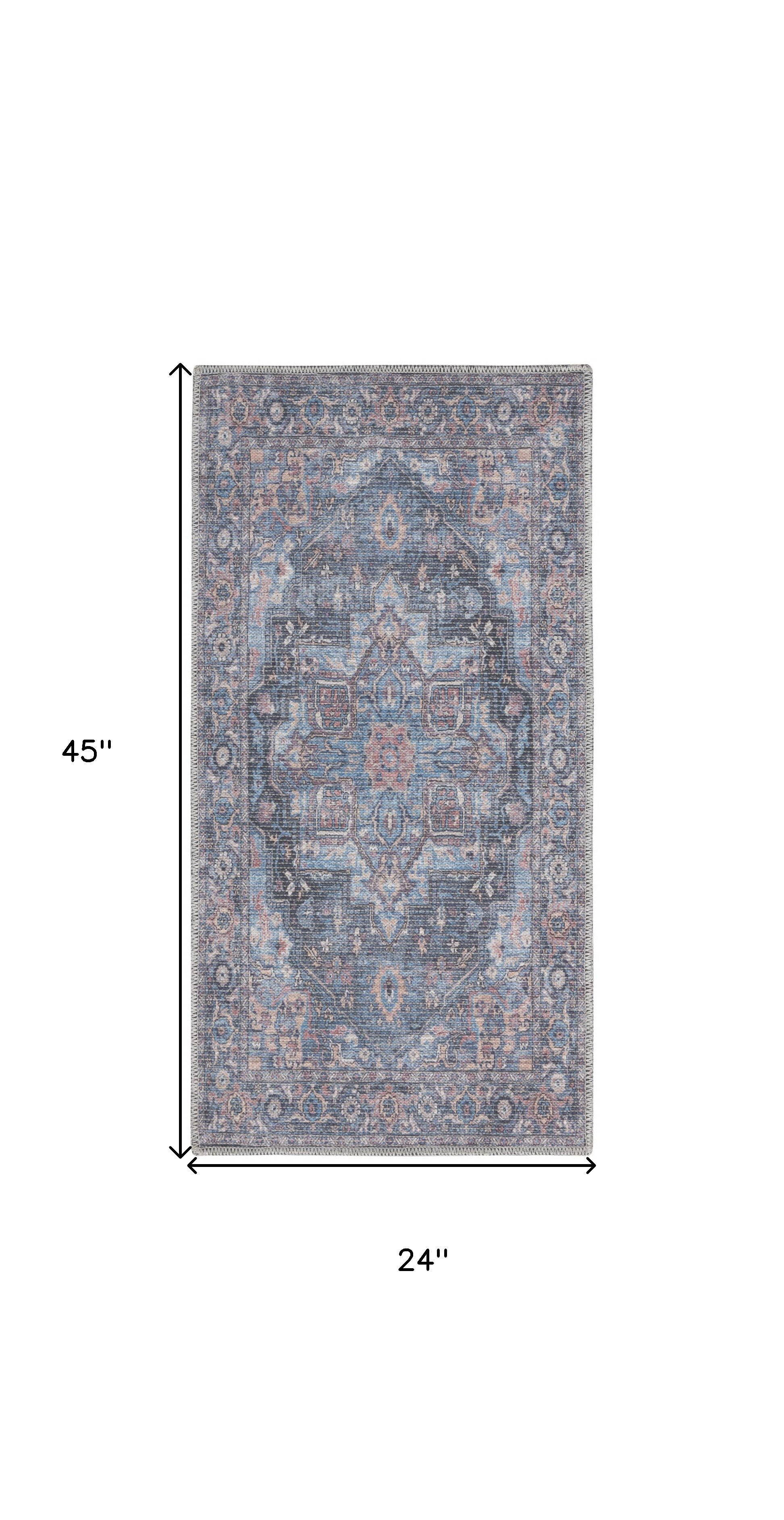 2' X 4' Light Blue Oriental Power Loom Distressed Washable Area Rug