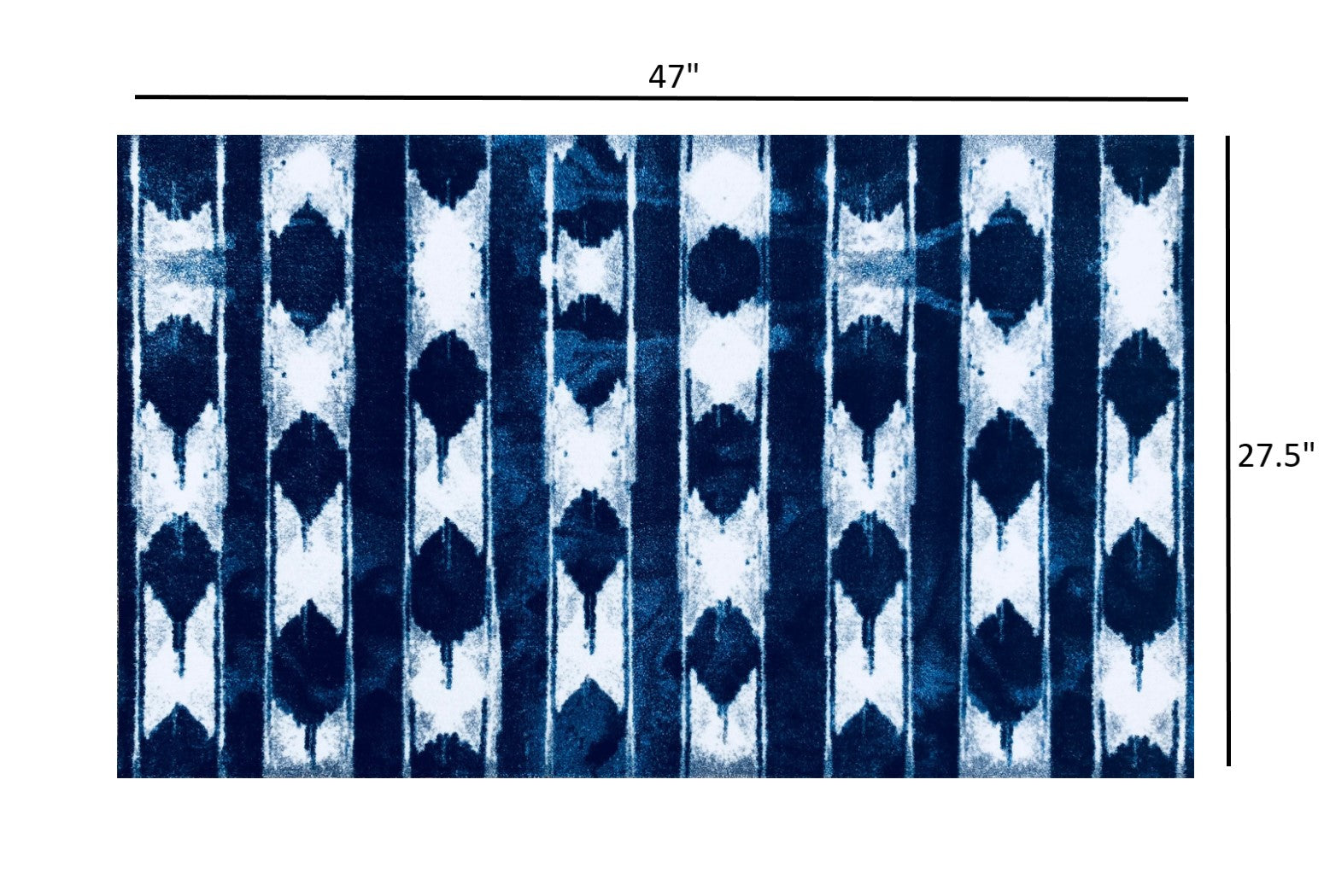2' x 4' Shades of Blue Abstract Stripes Washable Floor Mat