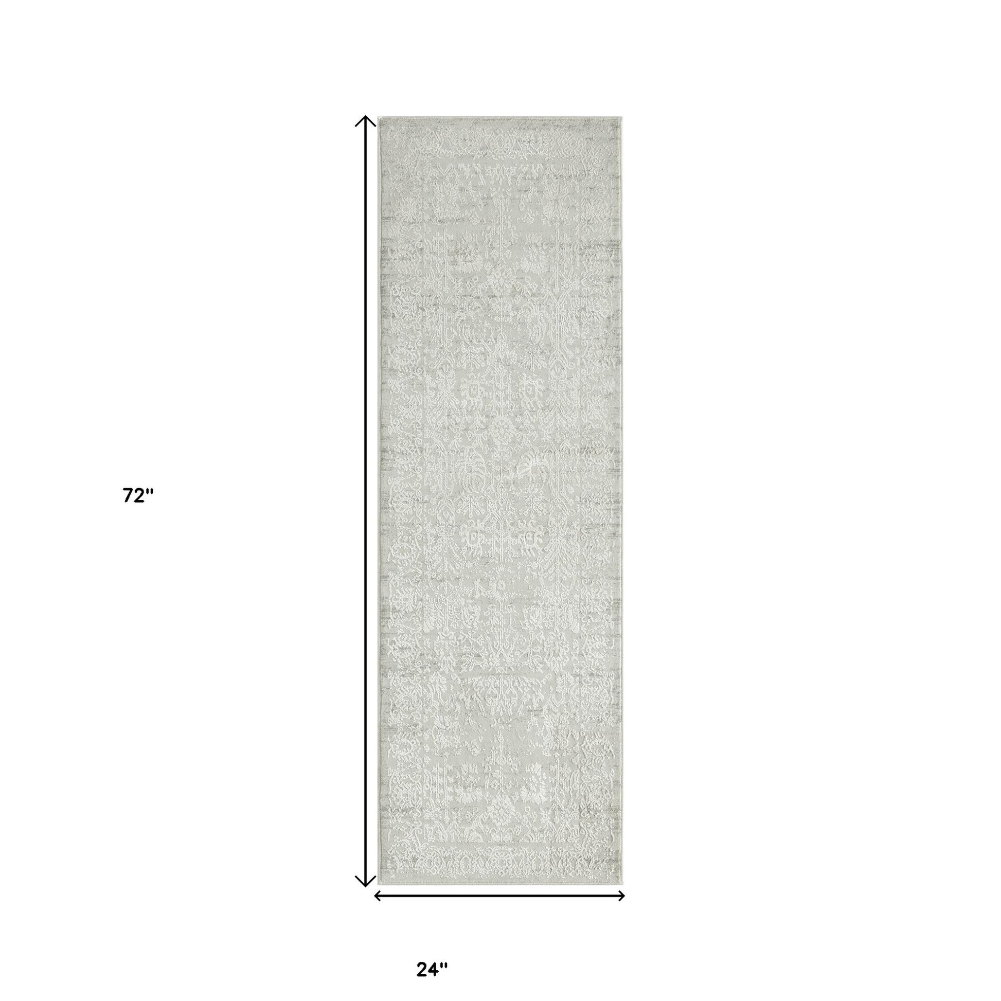 2' X 6' Ivory And Gray Floral Stain Resistant Area Rug
