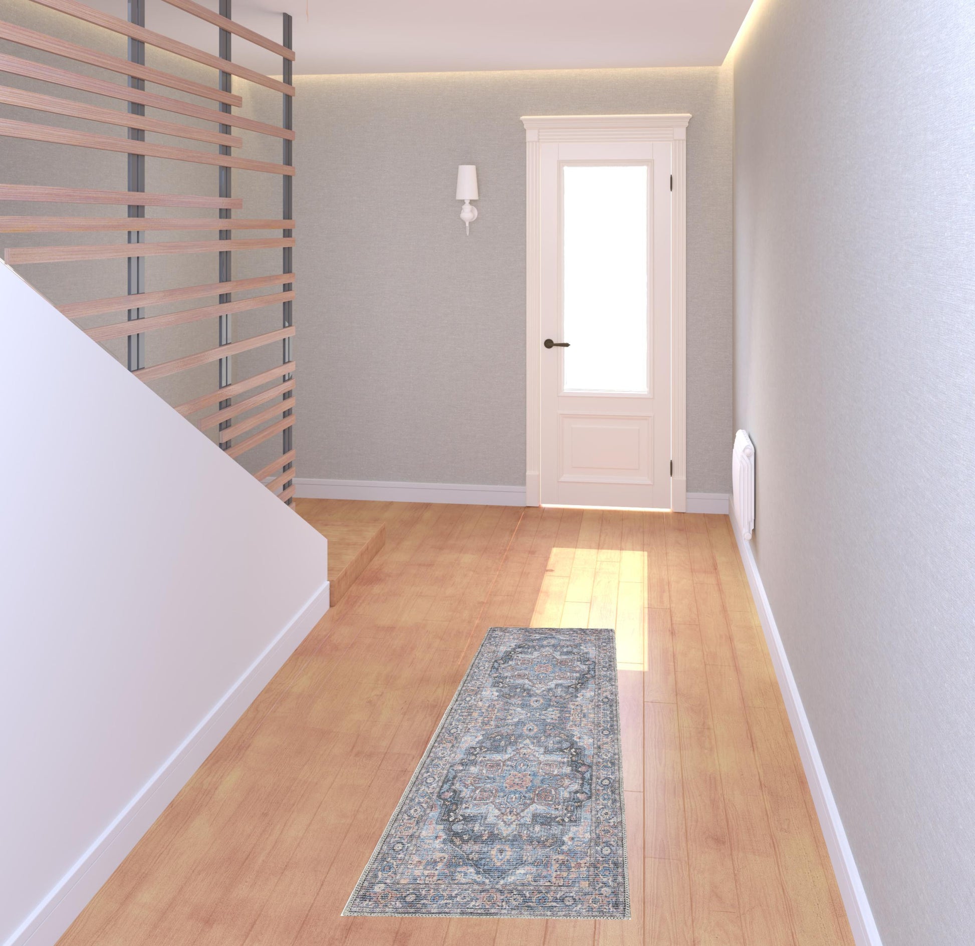 Set an inviting tone in your space with this 2' x 6' light blue oriental power loom distressed washable runner rug. This runner shaped rug features a oriental design in light blue to give it visual interest. A classic shape marries with good looking design for your space Made in Turkey, this rug offers high quality combined with good looking designer sensibilities. Place this area rug against a hardwood or tile floor and it will enliven your living space with style and sophistication. .28" H x 24.00" W x 72.00" D