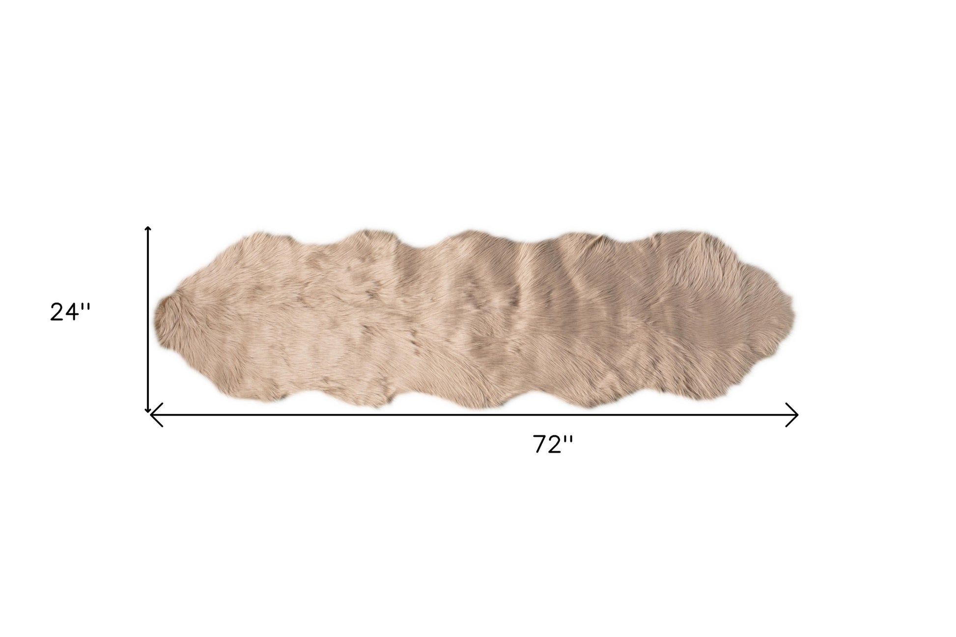 2' X 6' Taupe Faux Fur Washable Non Skid Area Rug