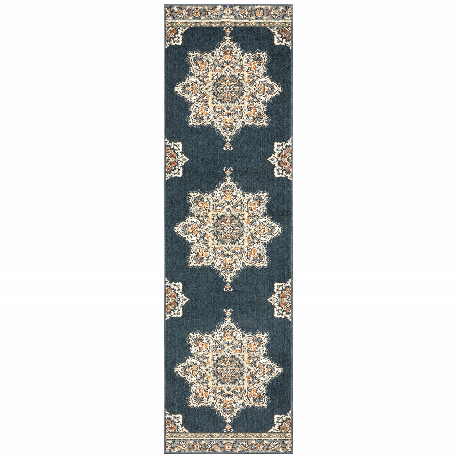 2’ X 7’ Blue And Beige Floral Medallion Indoor Runner Rug