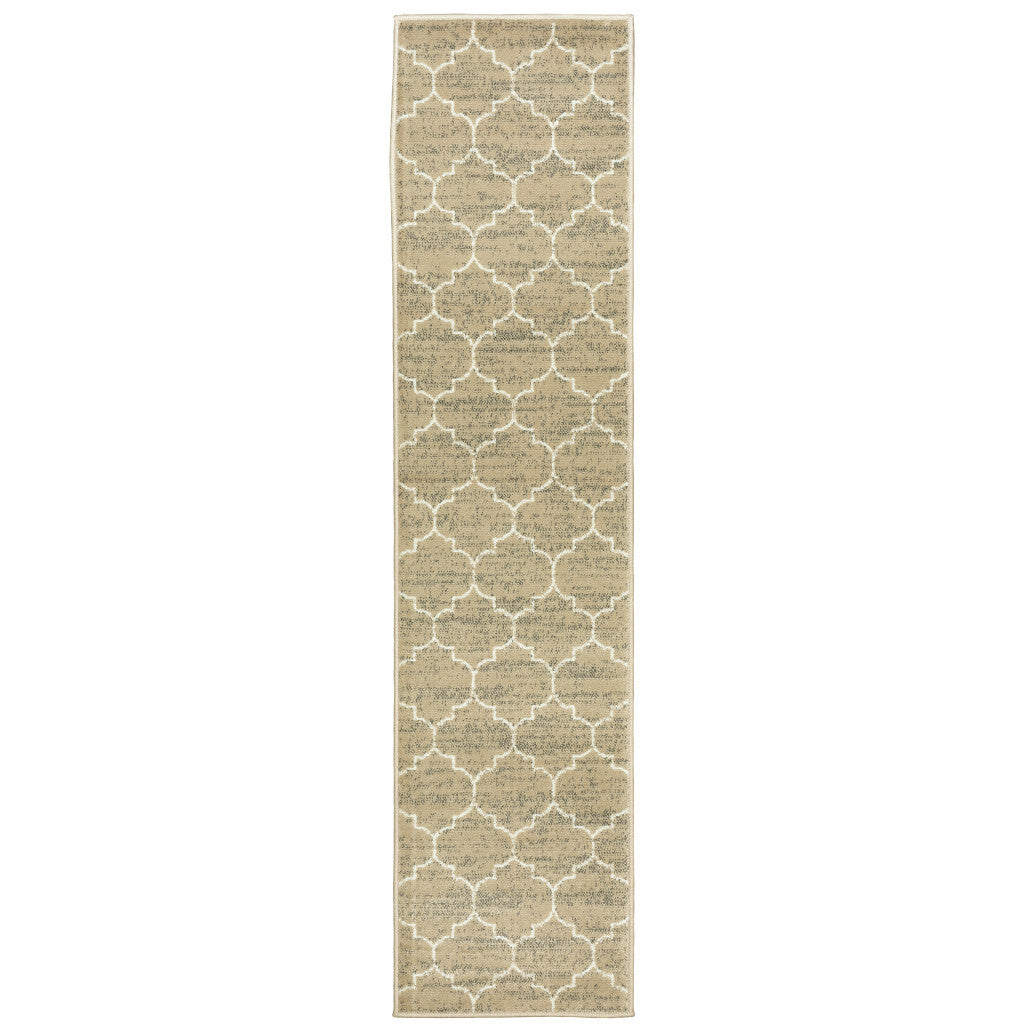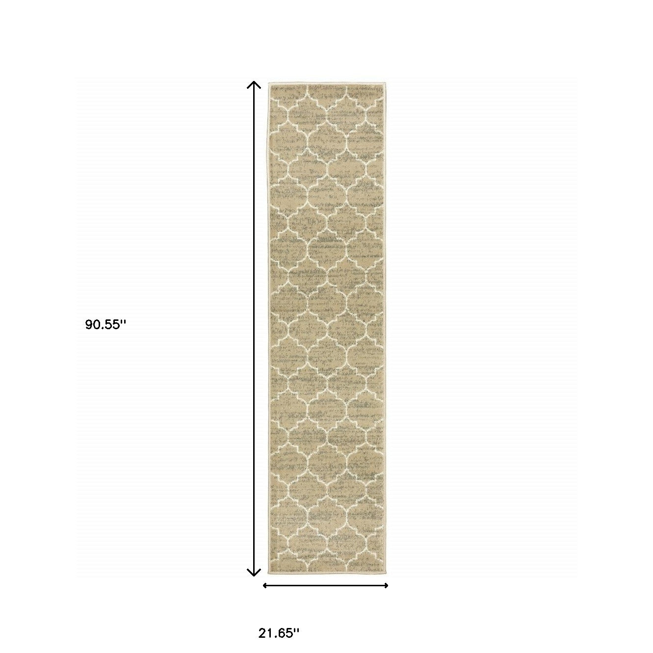 2' X 8' Beige And Ivory Geometric Power Loom Stain Resistant Runner Rug