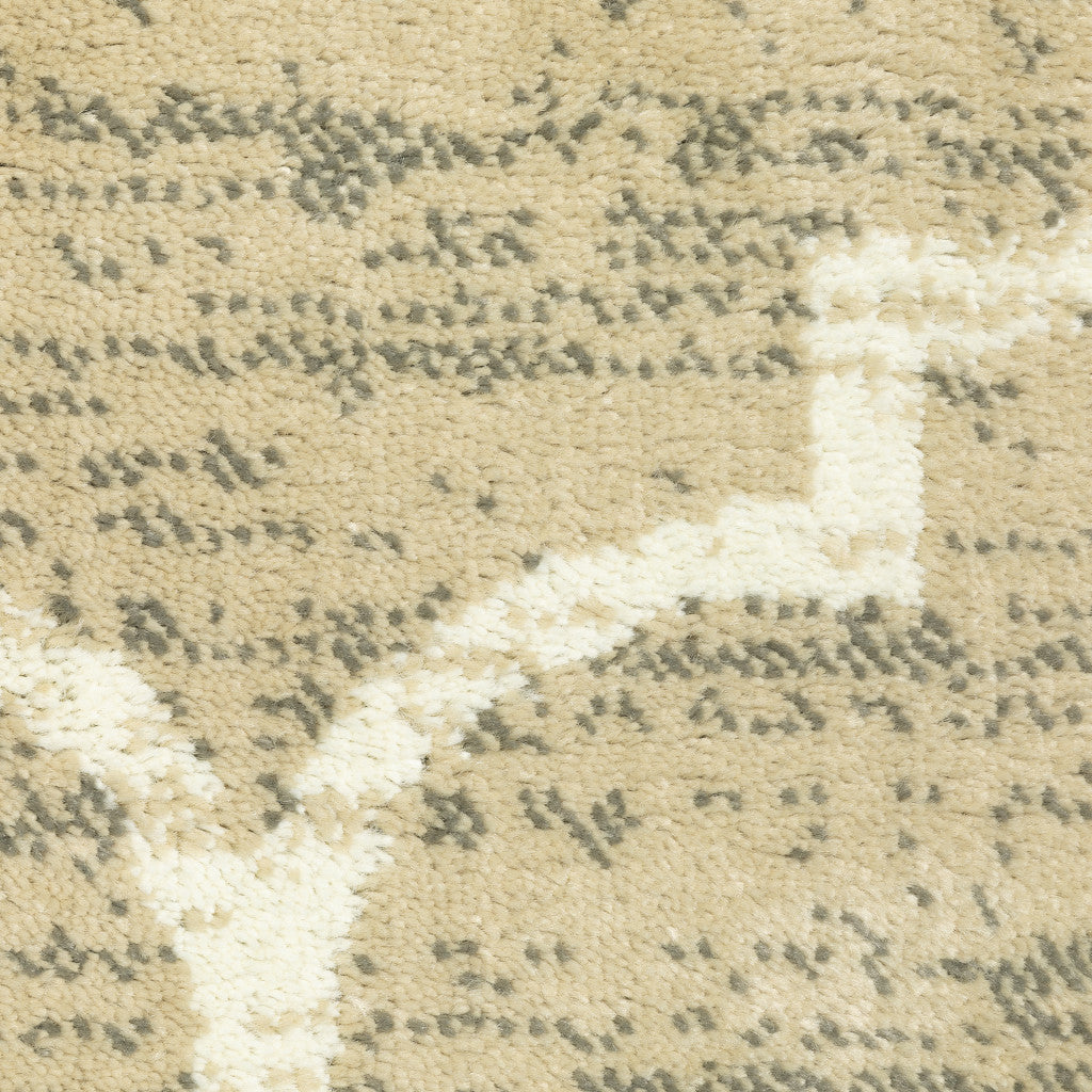 This 2' x 8' beige and ivory geometric power loom stain resistant runner rug, is a great way to add warmth to a room. This runner shaped rug features a geometric design in beige and ivory to give it visual interest. A classic shape marries with good looking design for your space Ideal for spaces with kids and pets, this rug is stain resistant to help repel stains and spilled liquids. Place this area rug against a hardwood or tile floor and it will enliven your living space with style and sophistication. 0.31" H x 21.65" W x 90.55" D