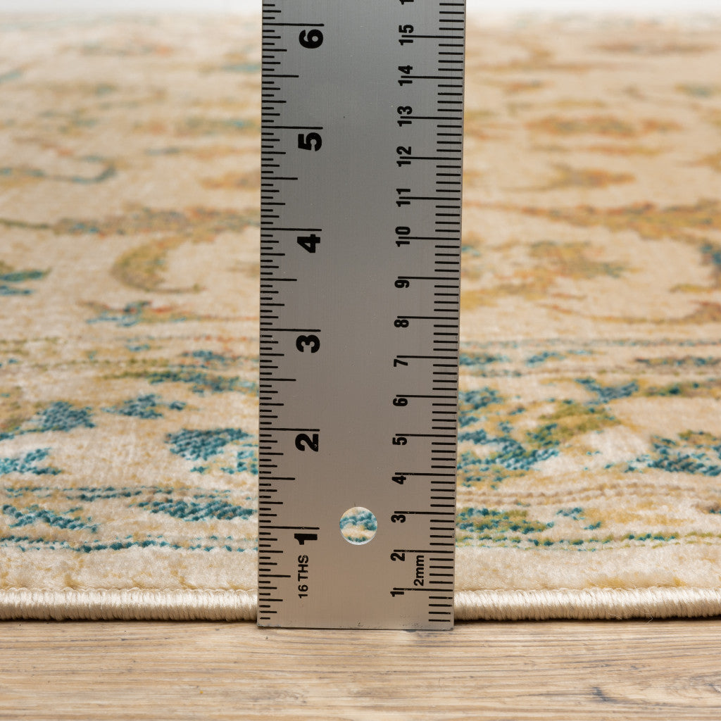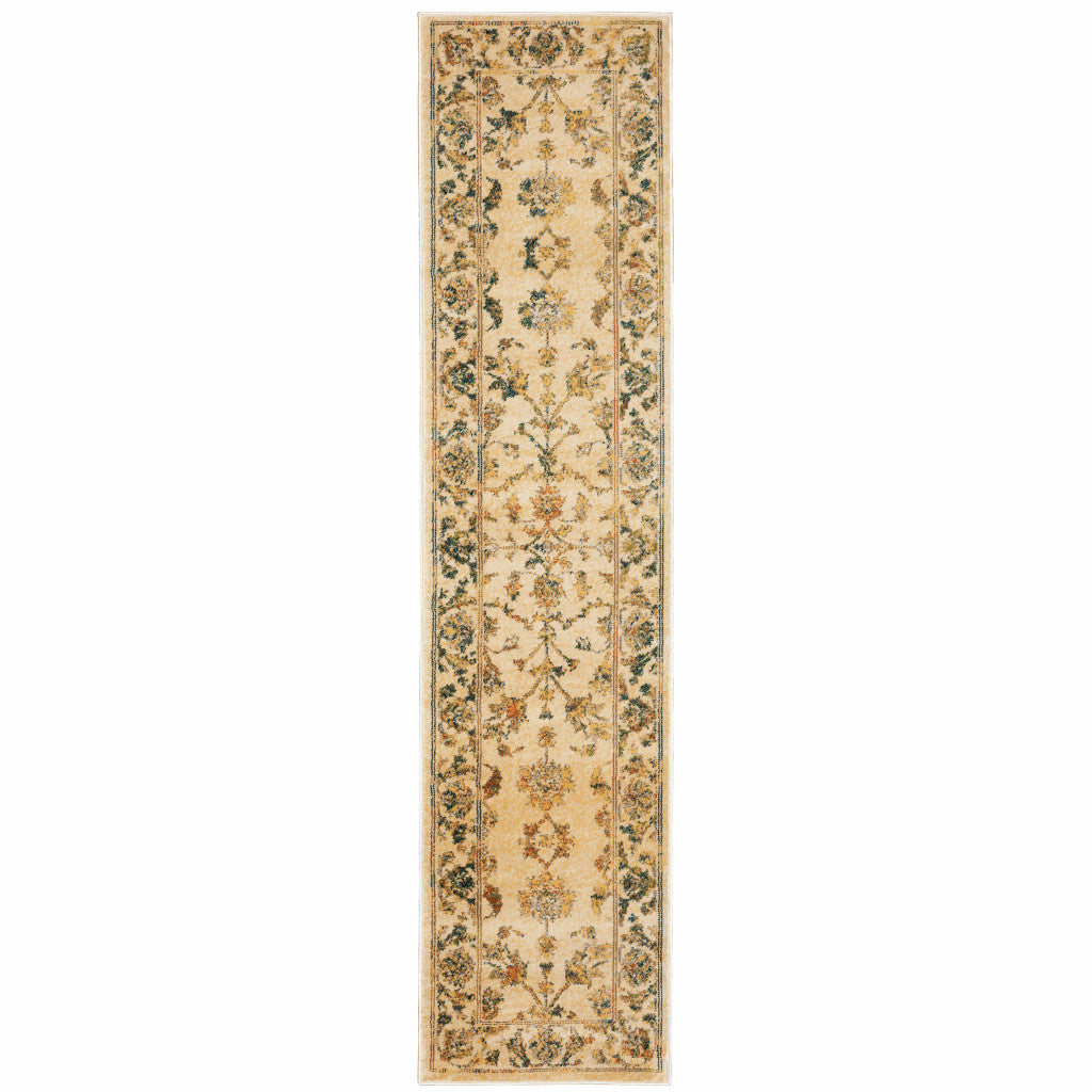 2' X 8' Beige Gold And Teal Oriental Power Loom Stain Resistant Runner Rug