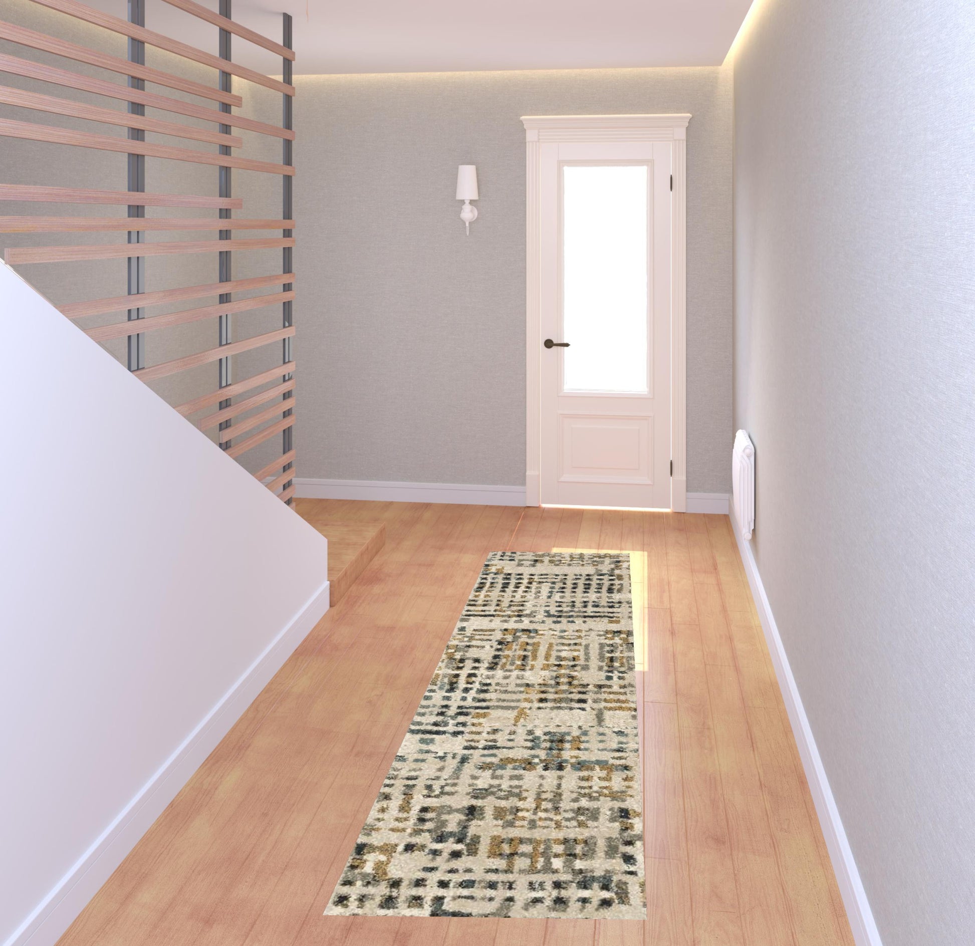 Add some artistry to your room with this 2' x 8' beige grey blues orange yellow and ivory abstract power loom stain resistant runner rug. This runner shaped rug features a abstract design in beige grey blues orange yellow and ivory to give it visual interest. A classic shape marries with good looking design for your space Ideal for spaces with kids and pets, this rug is stain resistant to help repel stains and spilled liquids. Place this area rug against a hardwood or tile floor and it will enliven your living space with style and sophistication. 0.78" H x 26.77" W x 90.55" D