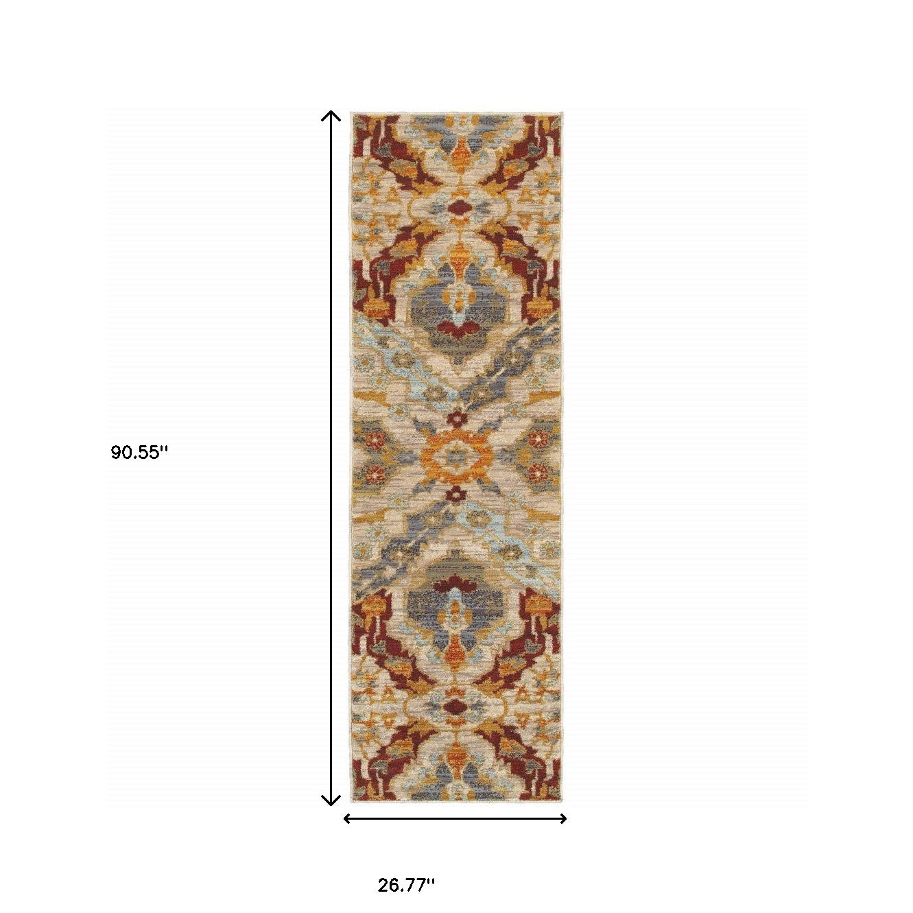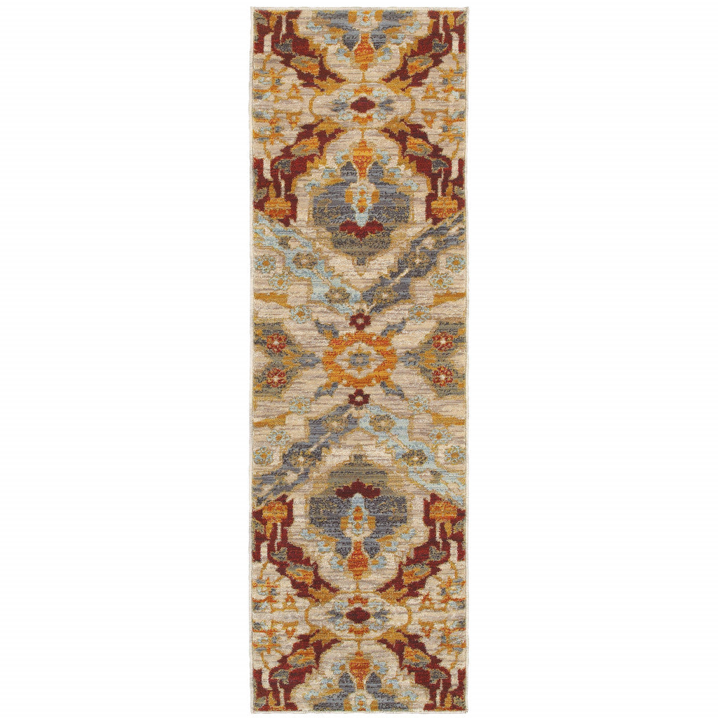 2' X 8' Beige Orange Blue Gold And Grey Abstract Power Loom Stain Resistant Runner Rug