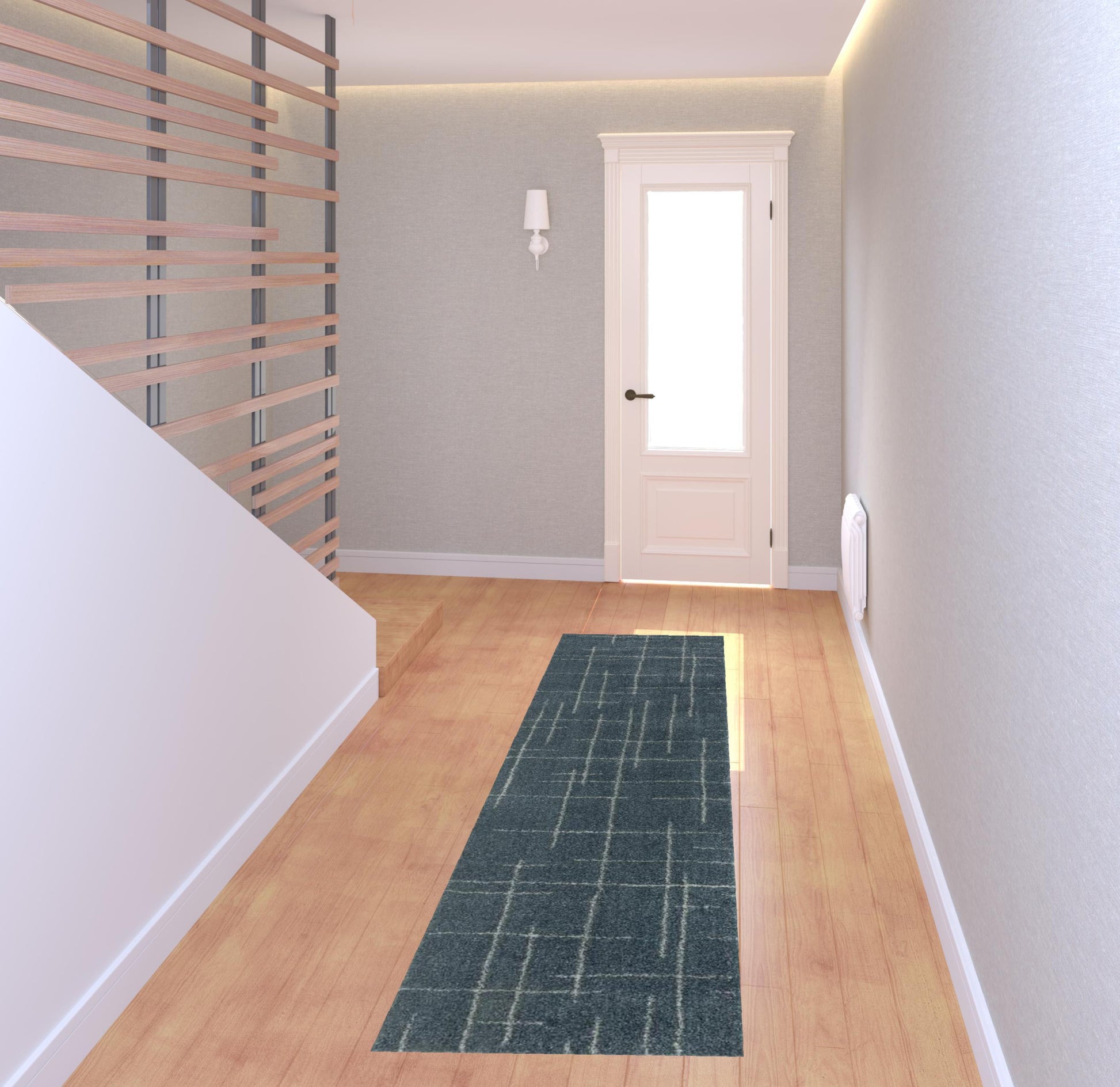Add some artistry to your room with this 2' x 8' blue and grey geometric power loom stain resistant runner rug. This runner shaped rug features a geometric design in blue and grey to give it visual interest. A classic shape marries with good looking design for your space Ideal for spaces with kids and pets, this rug is stain resistant to help repel stains and spilled liquids. Area Rugs help to give warmth and sense of home to your space. 0.71" H x 26.77" W x 90.55" D