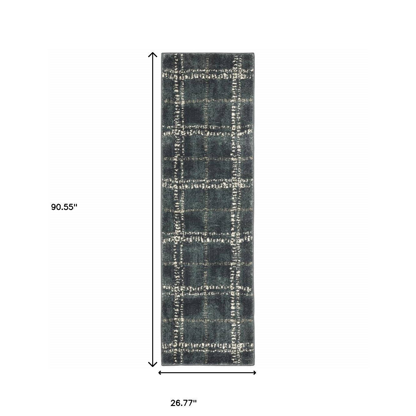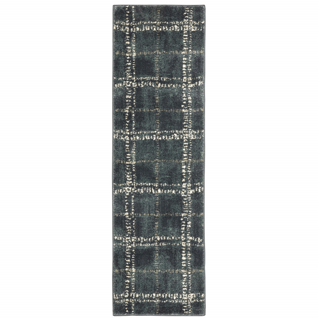 2' X 8' Blue And Ivory Geometric Power Loom Stain Resistant Runner Rug