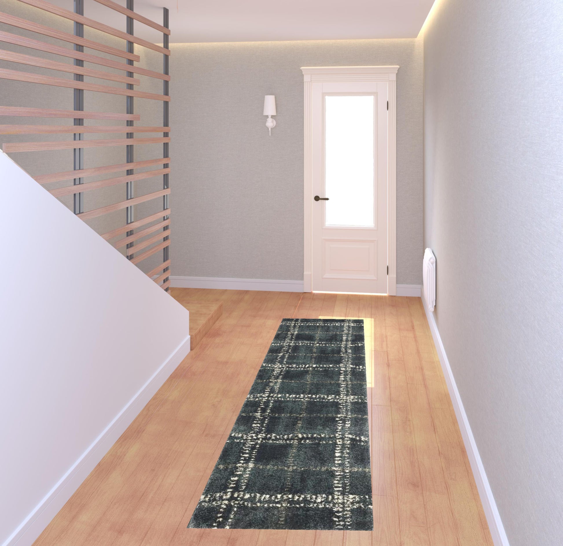 Add great coloration and comfortable texture to your space with this 2' x 8' blue and ivory geometric power loom stain resistant runner rug. This runner shaped rug features a geometric design in blue and ivory to give it visual interest. A classic shape marries with good looking design for your space Ideal for spaces with kids and pets, this rug is stain resistant to help repel stains and spilled liquids. Area Rugs help to give warmth and sense of home to your space. 0.78" H x 26.77" W x 90.55" D
