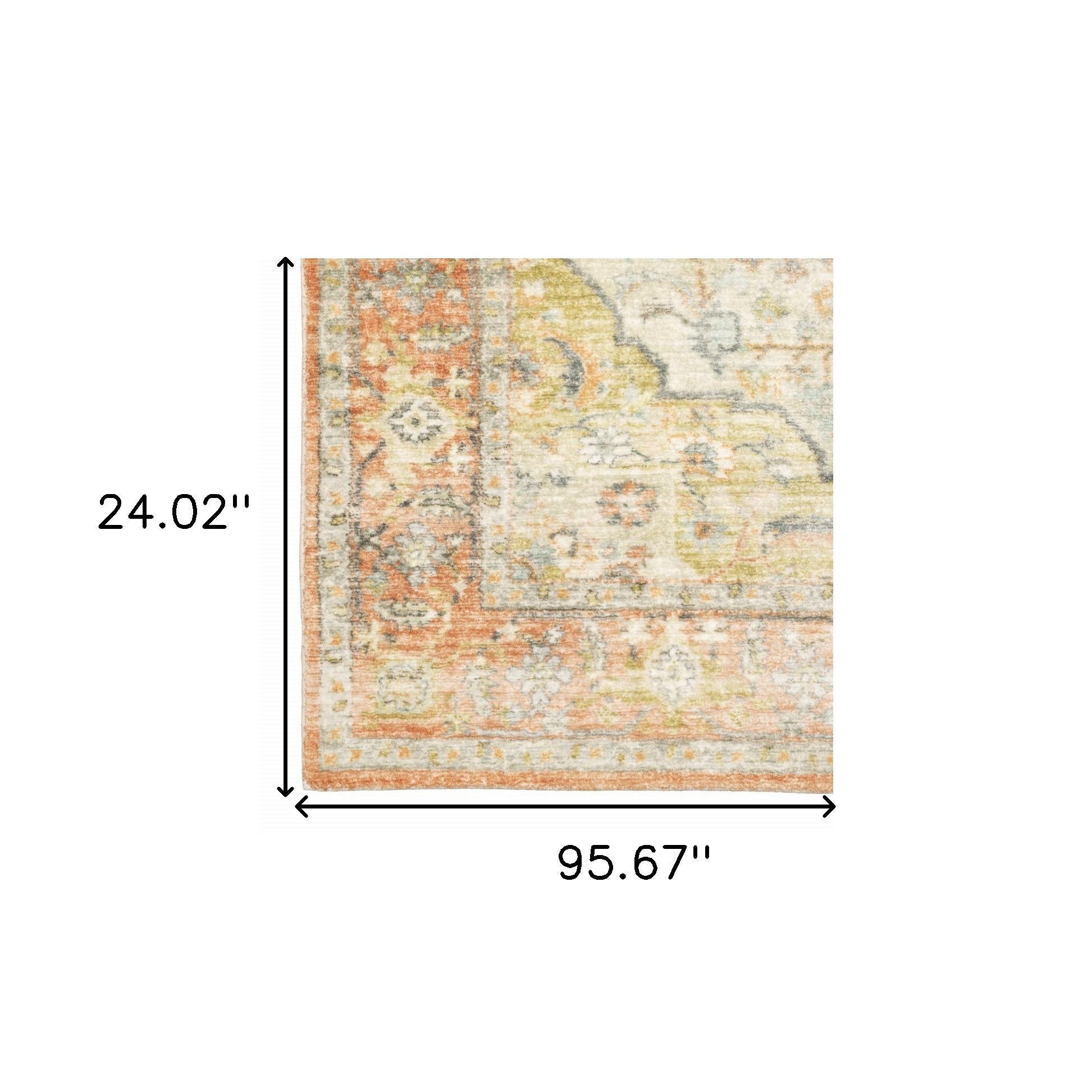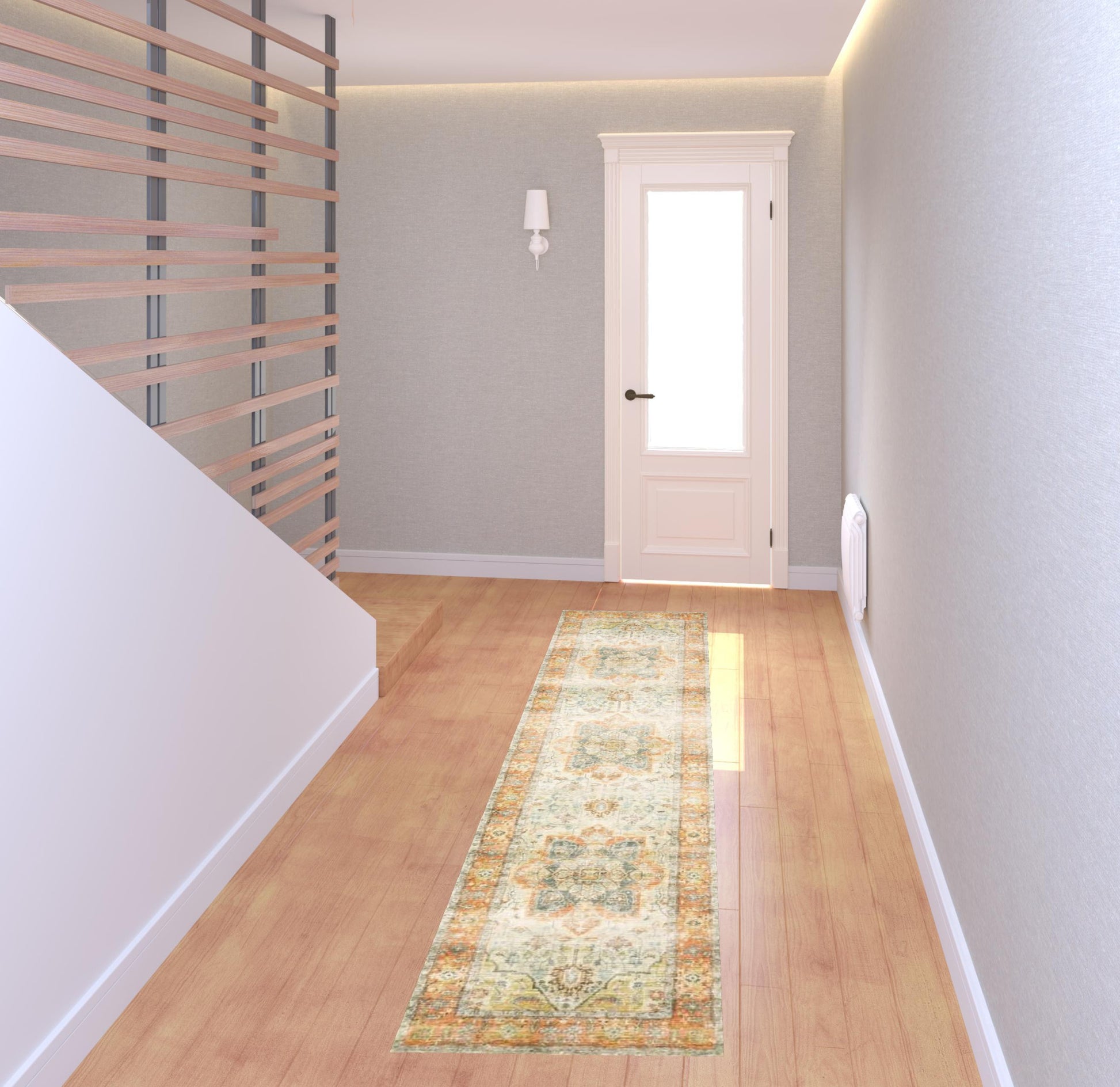 Add some artistry to your room with this 2' x 8' blue and orange abstract power loom stain resistant runner rug. This runner shaped rug features a abstract design in blue and orange to give it visual interest. A classic shape marries with good looking design for your space Ideal for spaces with kids and pets, this rug is stain resistant to help repel stains and spilled liquids. Area Rugs help to give warmth and sense of home to your space. 0.39" H x 24.02" W x 95.67" D