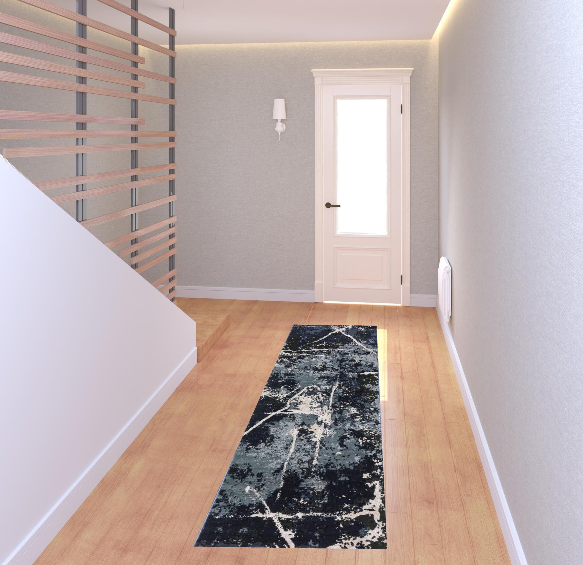 Add great coloration and comfortable texture to your space with this 2' x 8' blue grey and beige abstract power loom stain resistant runner rug. This runner shaped rug features a abstract design in blue grey and beige to give it visual interest. A classic shape marries with good looking design for your space Ideal for spaces with kids and pets, this rug is stain resistant to help repel stains and spilled liquids. Place this area rug against a hardwood or tile floor and it will enliven your living space with style and sophistication. 0.31" H x 26.77" W x 92.52" D