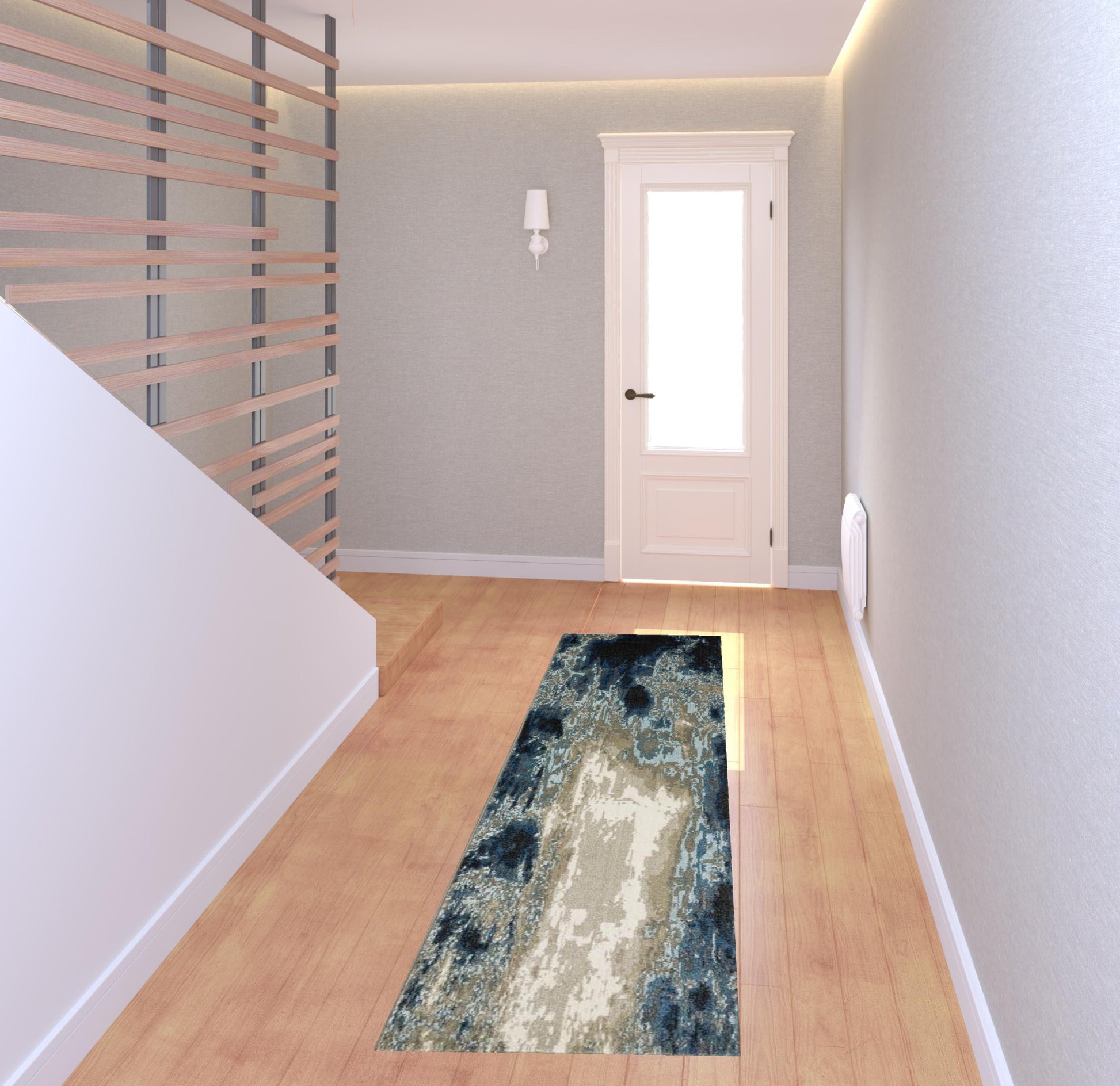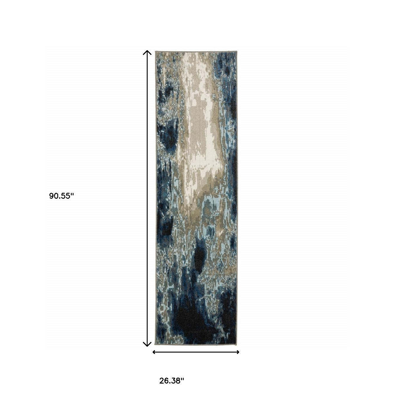 Set an inviting tone in your space with this 2' x 8' blue grey charcoal and beige abstract power loom stain resistant runner rug. This runner shaped rug features a abstract design in blue grey charcoal and beige to give it visual interest. A classic shape marries with good looking design for your space Ideal for spaces with kids and pets, this rug is stain resistant to help repel stains and spilled liquids. Place this area rug against a hardwood or tile floor and it will enliven your living space with style and sophistication. 0.31" H x 26.38" W x 90.55" D