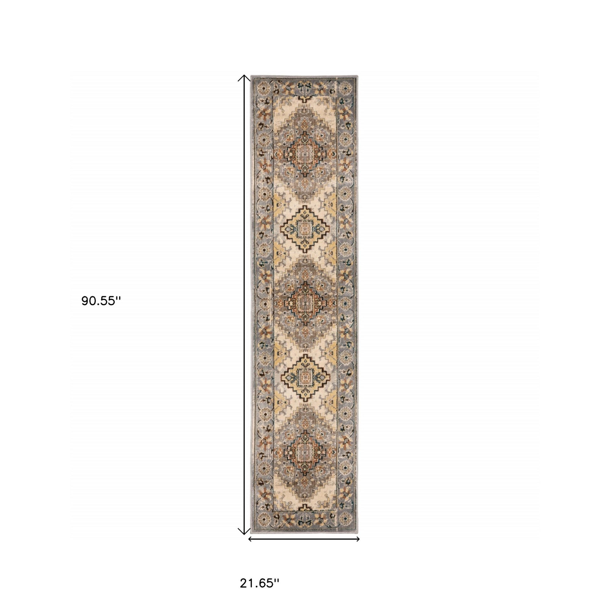 2’ X 8’ Gray And Beige Aztec Pattern Runner Rug