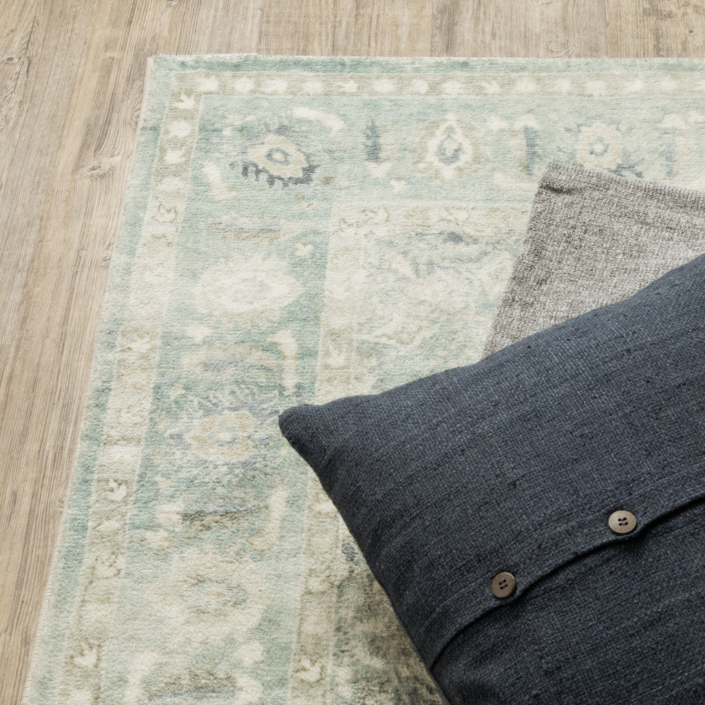 Add great coloration and comfortable texture to your space with this 2' x 8' green and ivory oriental power loom stain resistant runner rug. This runner shaped rug features a oriental design in green and ivory to give it visual interest. A classic shape marries with good looking design for your space Ideal for spaces with kids and pets, this rug is stain resistant to help repel stains and spilled liquids. Area Rugs help to give warmth and sense of home to your space. 0.39" H x 24.02" W x 95.67" D