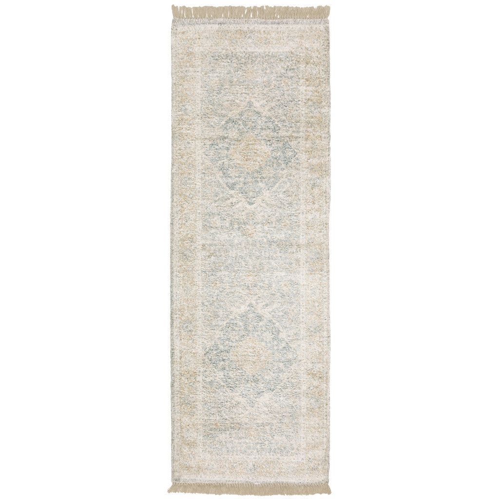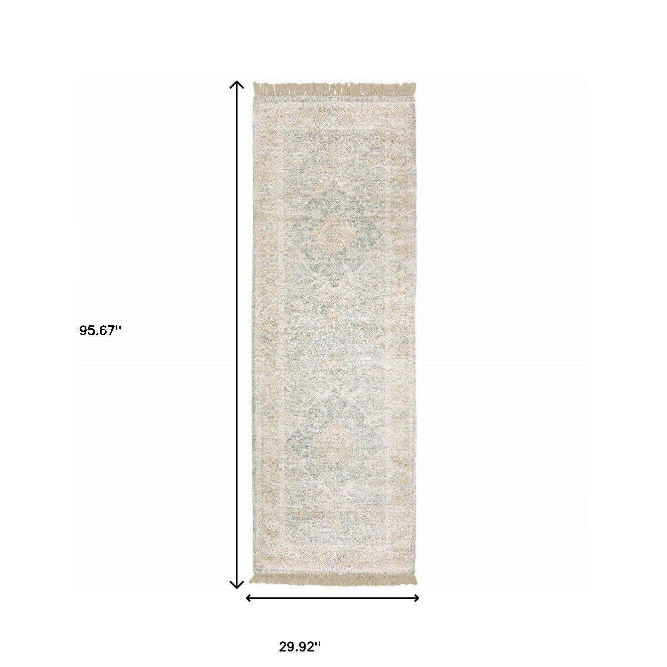 2' X 8' Grey And Beige Oriental Hand Loomed Stain Resistant Runner Rug With Fringe