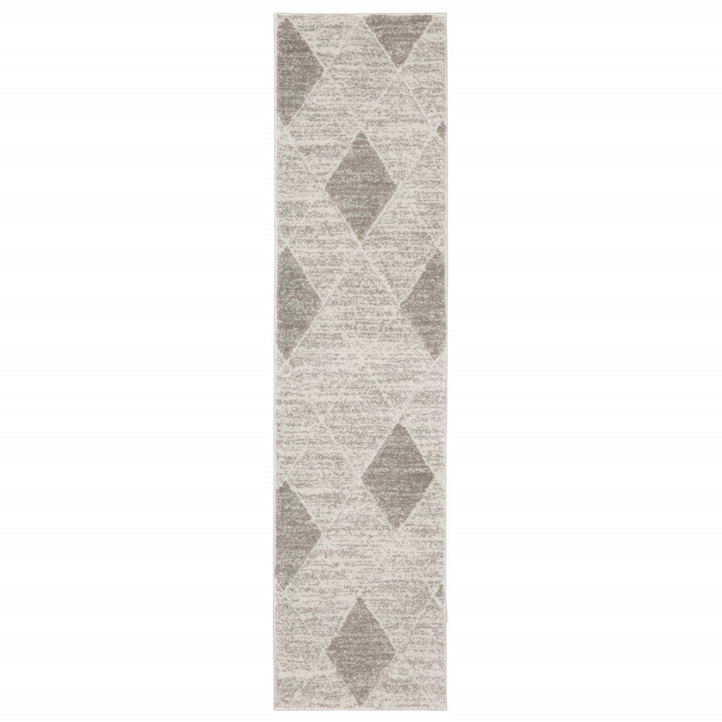 2' X 8' Grey And Ivory Geometric Power Loom Stain Resistant Runner Rug