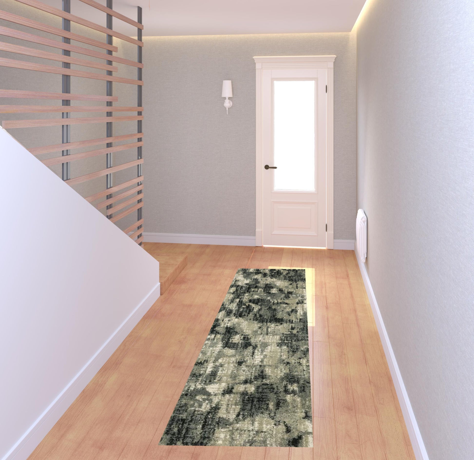 Set an inviting tone in your space with this 2' x 8' grey beige charcoal and blue abstract power loom stain resistant runner rug. This runner shaped rug features a abstract design in grey beige charcoal and blue to give it visual interest. A classic shape marries with good looking design for your space Ideal for spaces with kids and pets, this rug is stain resistant to help repel stains and spilled liquids. Place this area rug against a hardwood or tile floor and it will enliven your living space with style and sophistication. 0.79" H x 26.38" W x 90.55" D