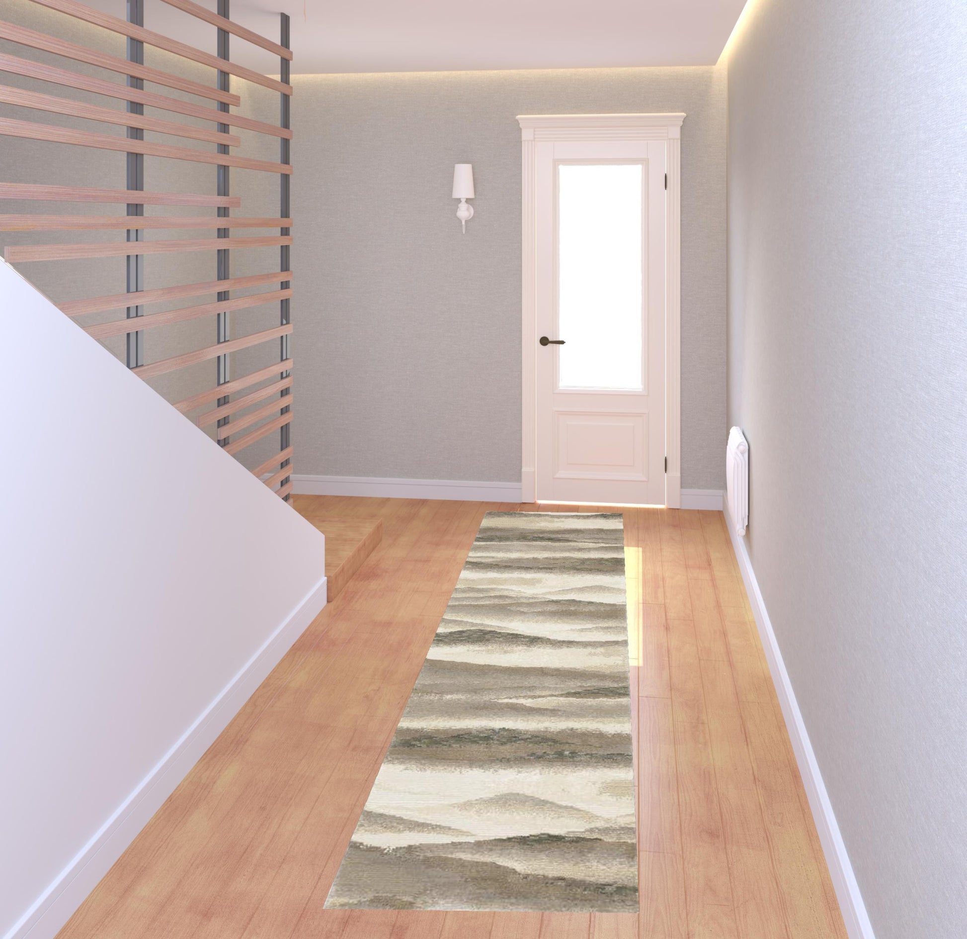 Add great coloration and comfortable texture to your space with this 2' x 8' grey blue and teal abstract power loom stain resistant runner rug. This runner shaped rug features a abstract design in grey blue and teal to give it visual interest. A classic shape marries with good looking design for your space Ideal for spaces with kids and pets, this rug is stain resistant to help repel stains and spilled liquids. Area Rugs help to give warmth and sense of home to your space. 0.55" H x 26.38" W x 99.61" D