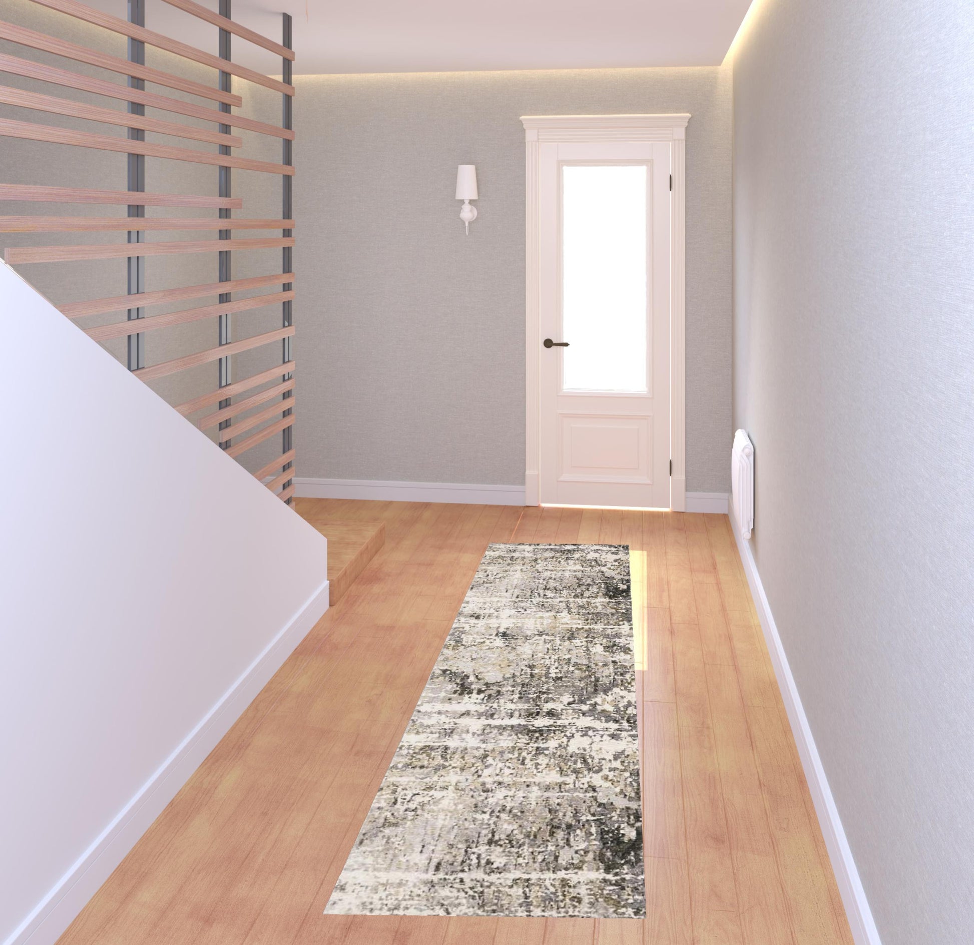 This 2' x 8' grey ivory beige charcoal black tan and brown abstract power loom stain resistant runner rug, is a great way to add warmth to a room. This runner shaped rug features a abstract design in grey ivory beige charcoal black tan and brown to give it visual interest. A classic shape marries with good looking design for your space Ideal for spaces with kids and pets, this rug is stain resistant to help repel stains and spilled liquids. Area Rugs help to give warmth and sense of home to your space. 0.31" H x 26.77" W x 92.52" D