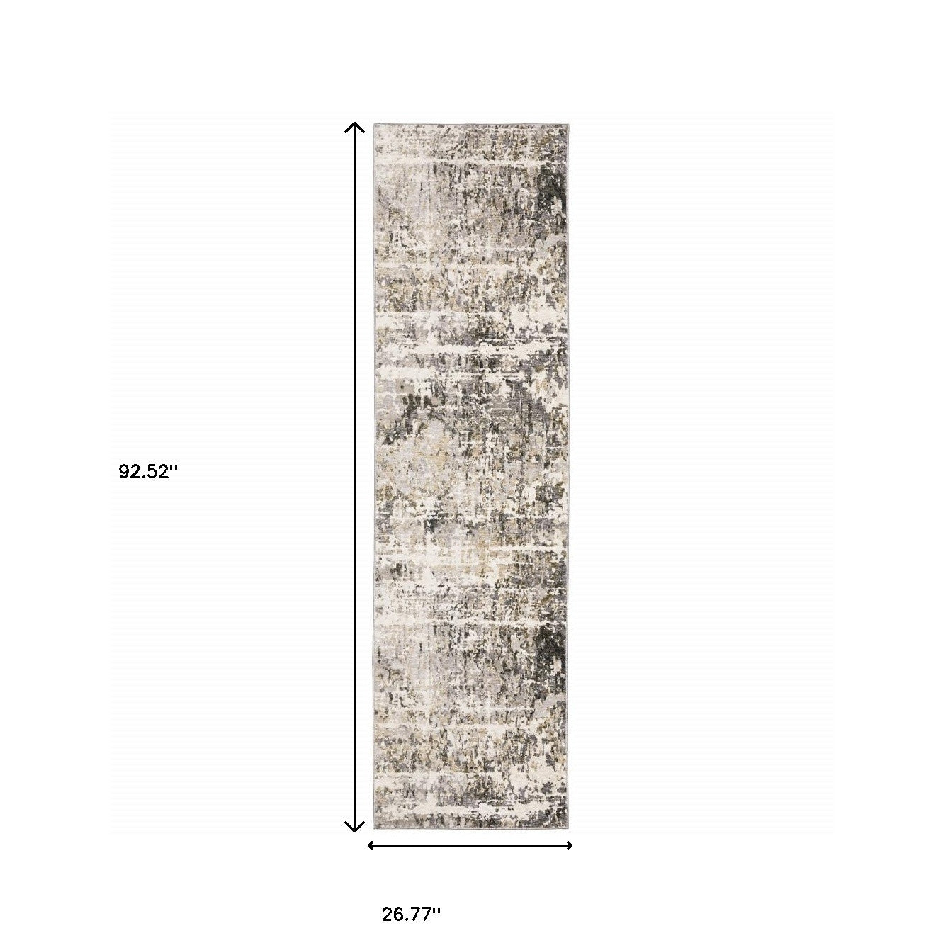 2' X 8' Grey Ivory Beige Charcoal Black Tan And Brown Abstract Power Loom Stain Resistant Runner Rug