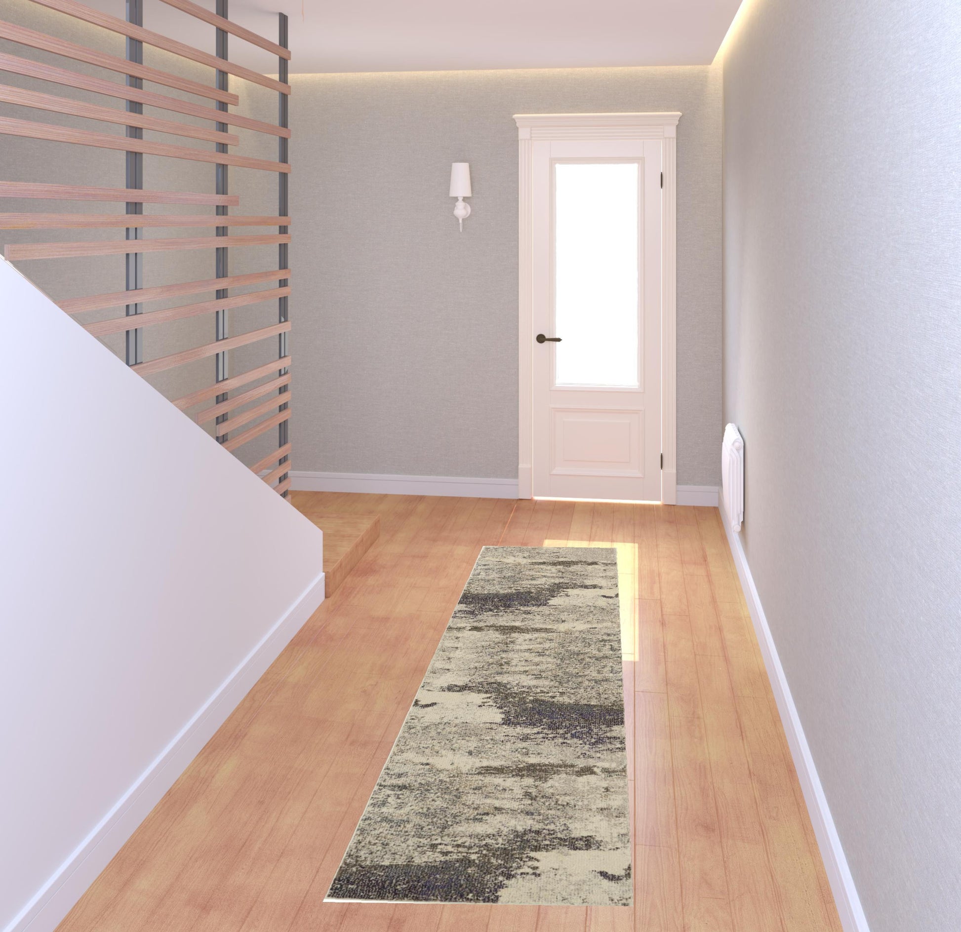 Set an inviting tone in your space with this 2' x 8' ivory and grey abstract power loom non skid runner rug. This runner shaped rug features a abstract design in ivory and grey to give it visual interest. A classic shape marries with good looking design for your space Made in Turkey, this rug offers high quality combined with good looking designer sensibilities. Area Rugs help to give warmth and sense of home to your space. .50" H x 26.00" W x 90.00" D