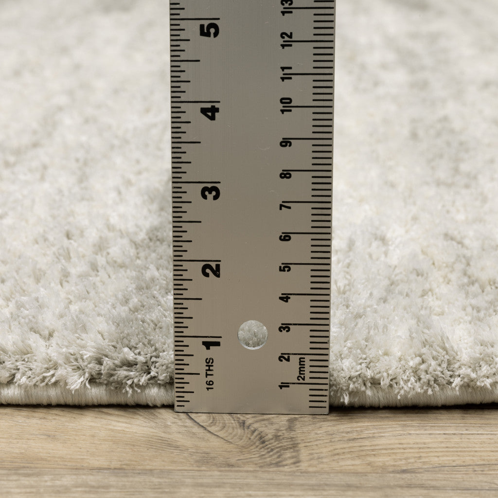 2' X 8' Ivory And Grey Geometric Shag Power Loom Stain Resistant Runner Rug