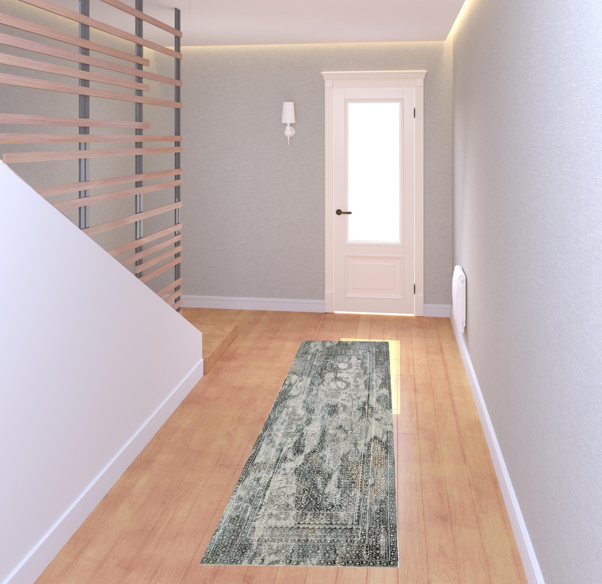 Add great coloration and comfortable texture to your space with this 2' x 8' ivory grey charcoal blue and rust oriental power loom stain resistant runner rug. This runner shaped rug features a oriental design in ivory grey charcoal blue and rust to give it visual interest. A classic shape marries with good looking design for your space Ideal for spaces with kids and pets, this rug is stain resistant to help repel stains and spilled liquids. Place this area rug against a hardwood or tile floor and it will enliven your living space with style and sophistication. 1" H x 26.77" W x 90.55" D