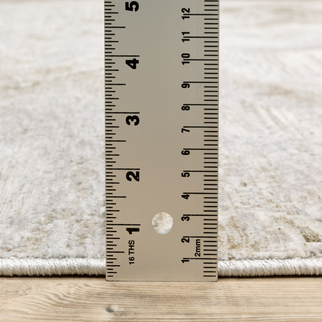 2' X 8' Ivory Tan Beige Grey And Brown Abstract Power Loom Stain Resistant Runner Rug